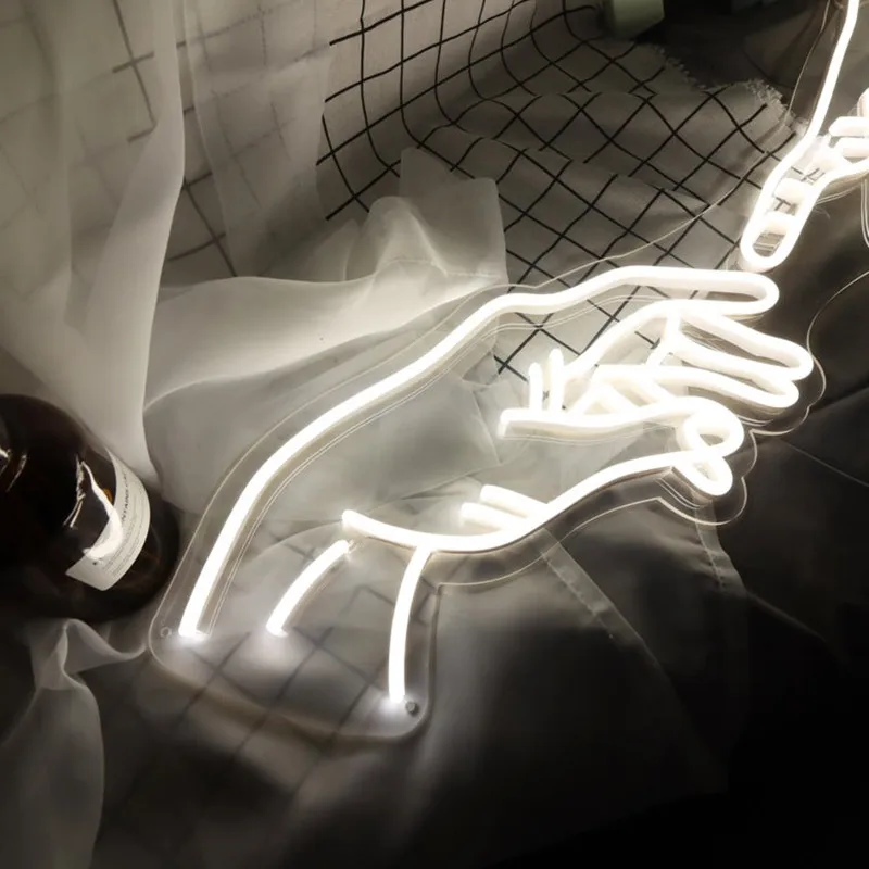 Неоновая вывеска руки Бога для спальни с неосветильник выми цветами на заказ, светодиодные неоновые вывески на заказ для украшения стен, прозрачный акрил