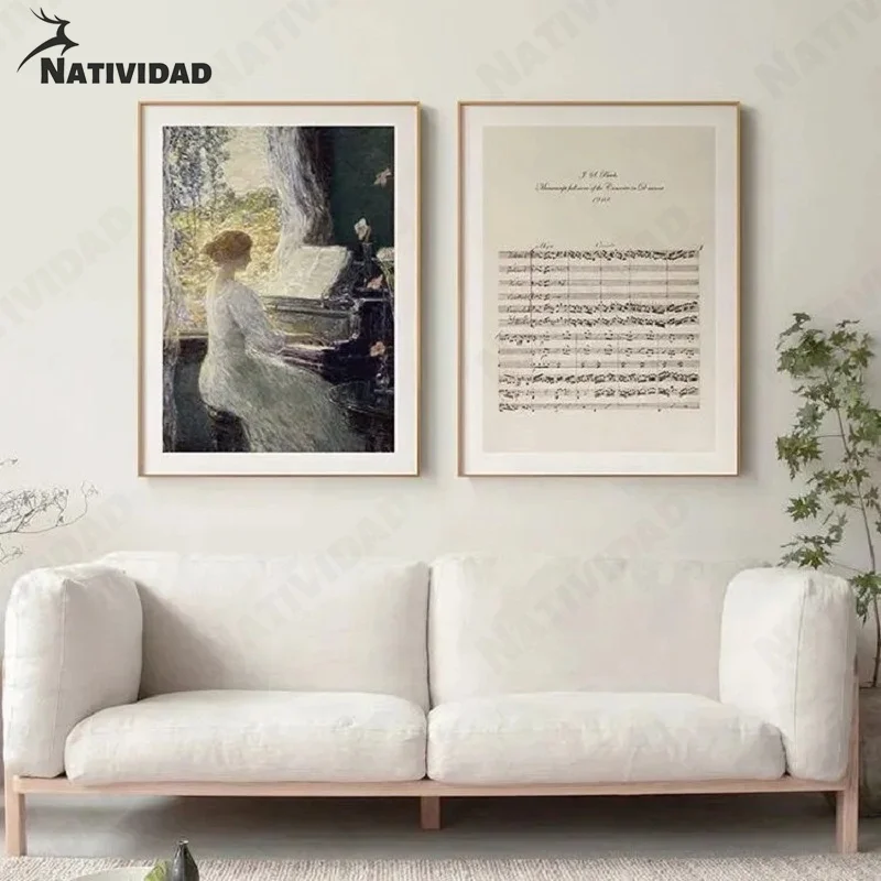 Скандинавский пласт для пианино, холст с рисунком в стиле ретро, балерина, с принтом, игровое пианино, настенные наклейки для гостиной, спальни, украшение для дома