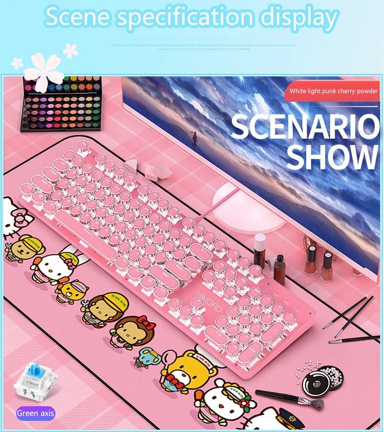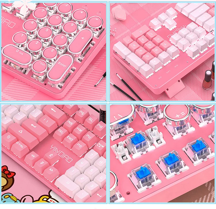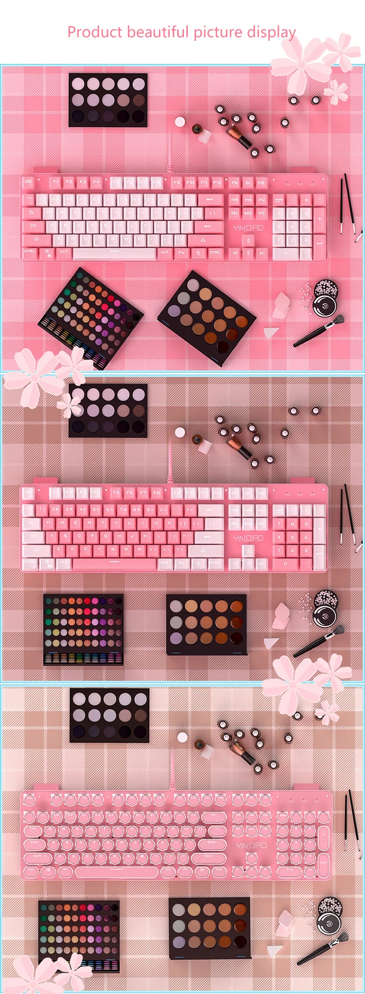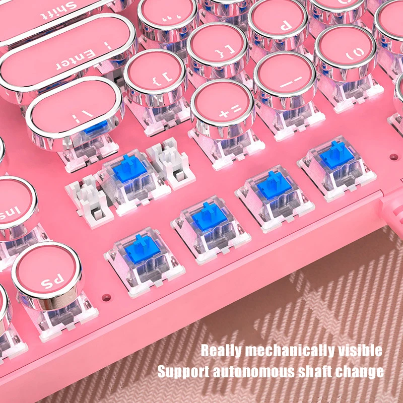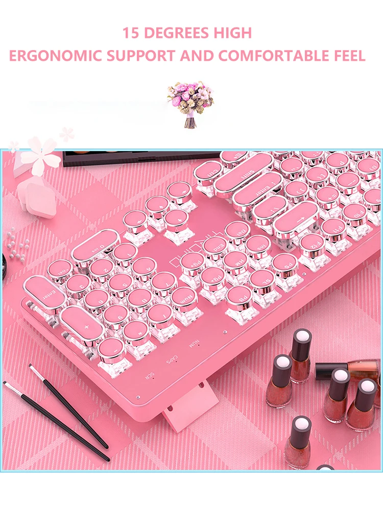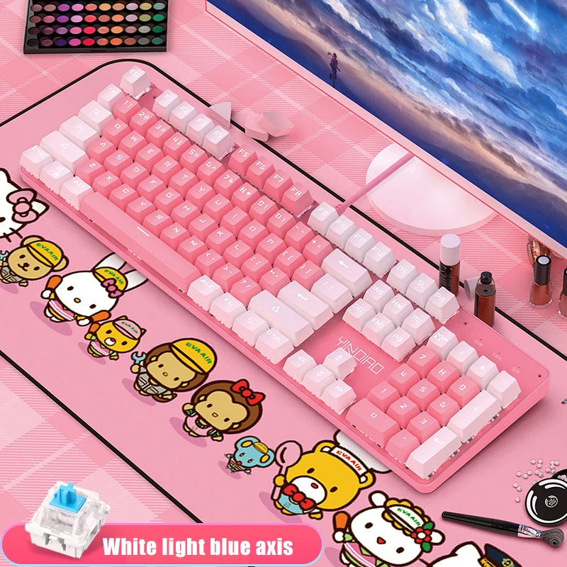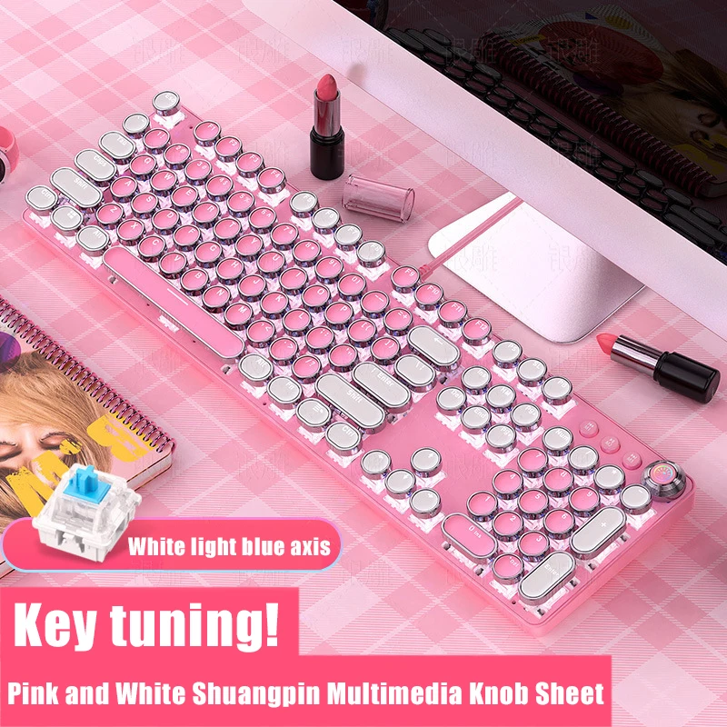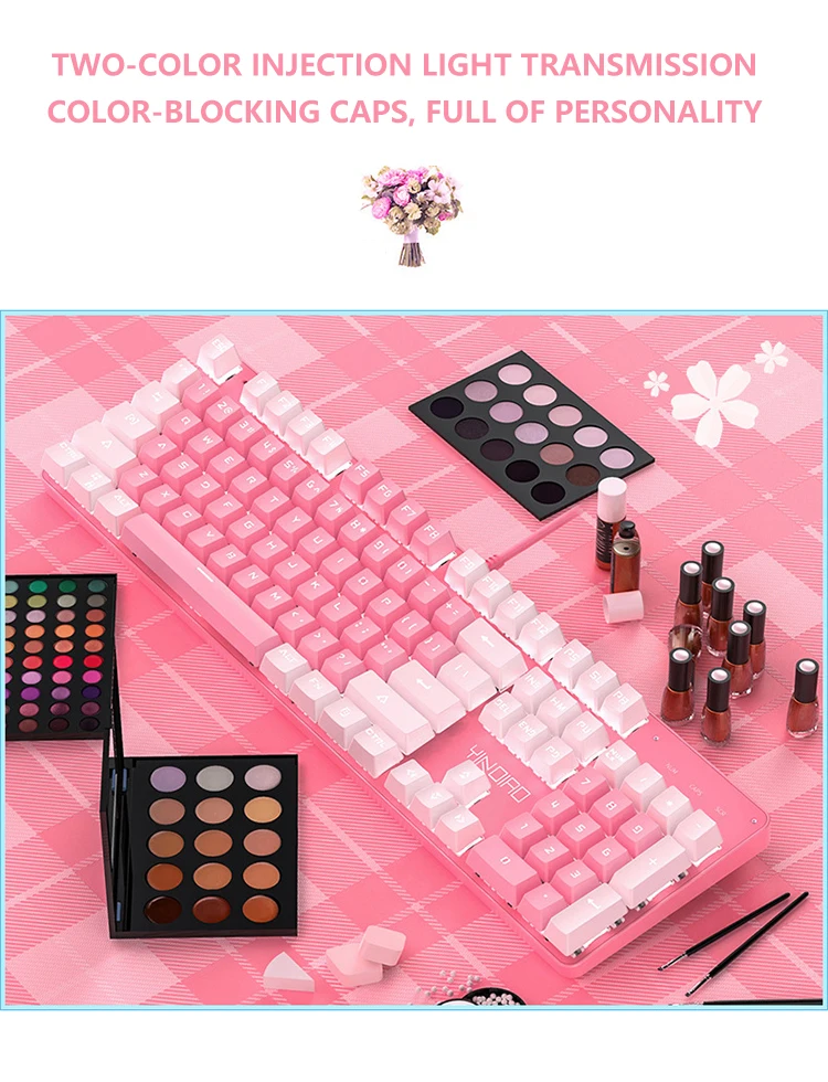 Розовая игровая механическая проводная клавиатура синяя swicth104 key punk keycap RGB регулируемая подсветка USB-интерфейс подходит для геймеров ПК ноутбуков