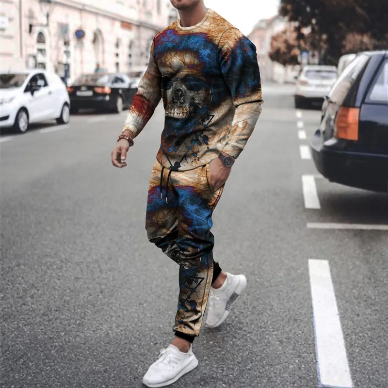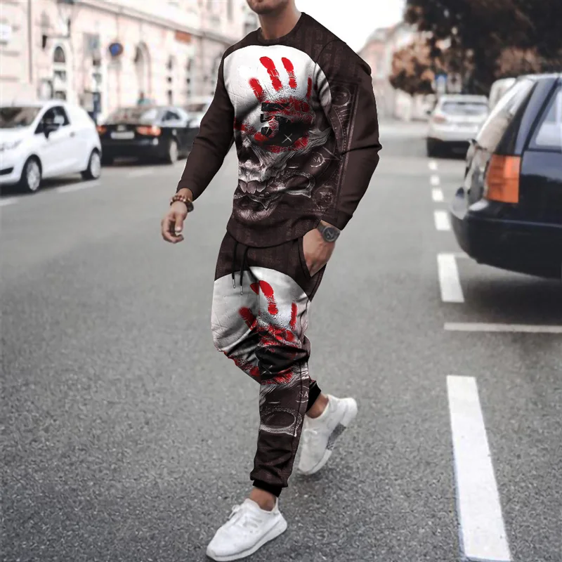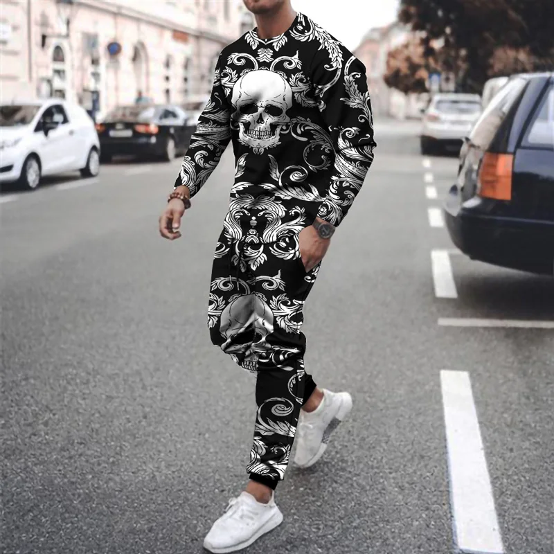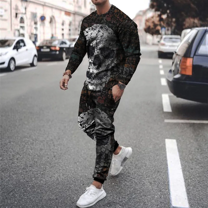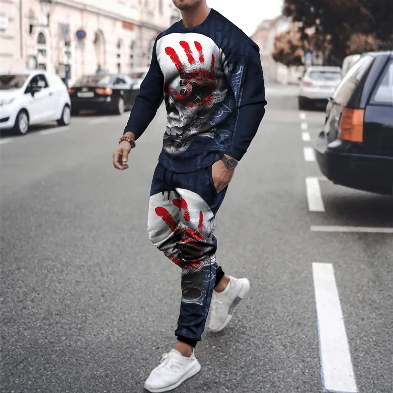 Костюм спортивный мужской с 3D-принтом, повседневный костюм с круглым вырезом, с длинными рукавами, с ужасным принтом черепа, в стиле Харадзюку, Осень-зима