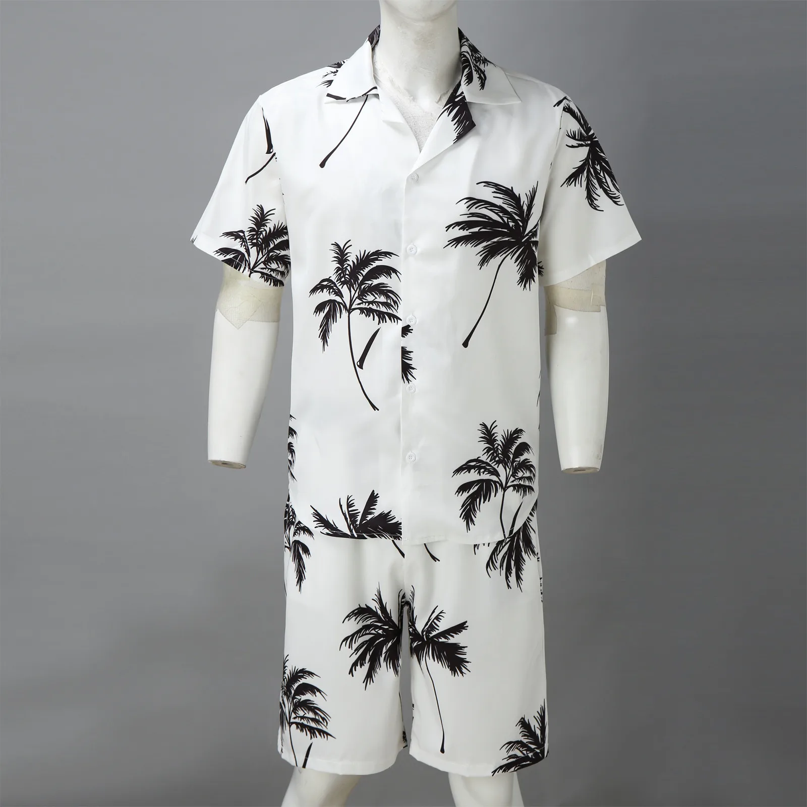 Мужская пляжная рубашка с коротким рукавом, повседневный костюм с Гавайскими шортами и цветочным принтом пальмы, лето 2021