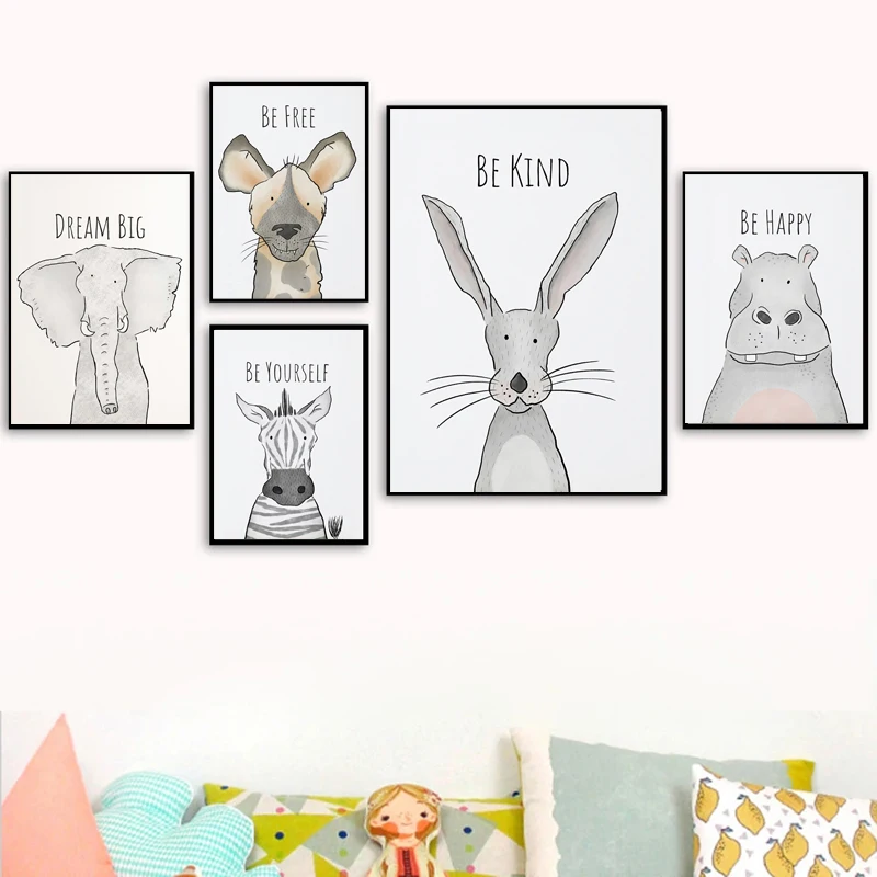 Милые Мультяшные Животные декоративные картины лев ребенок слон Дет...