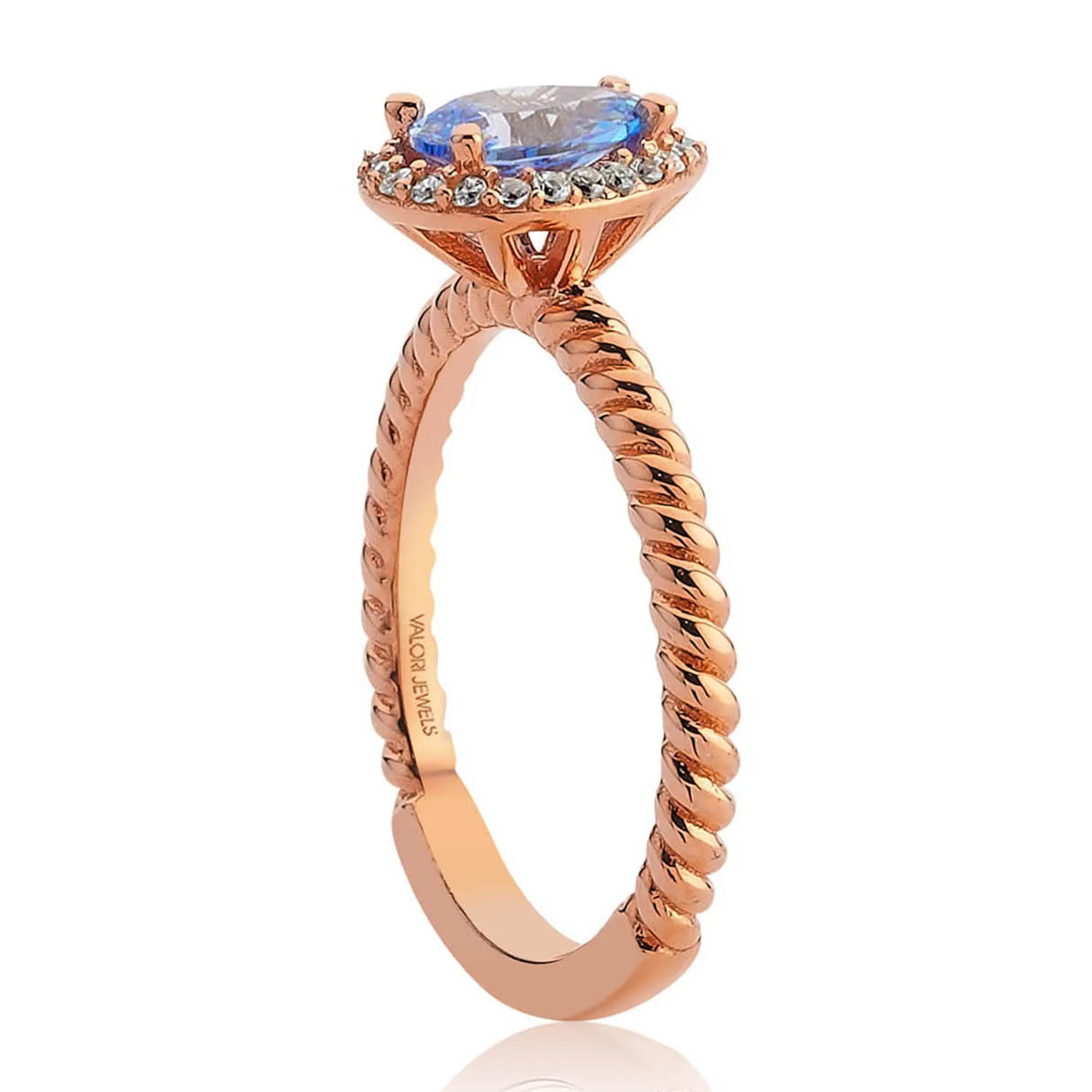 Кольцо с цирконием, покрытое розовым золотом, с белым овальным драг...