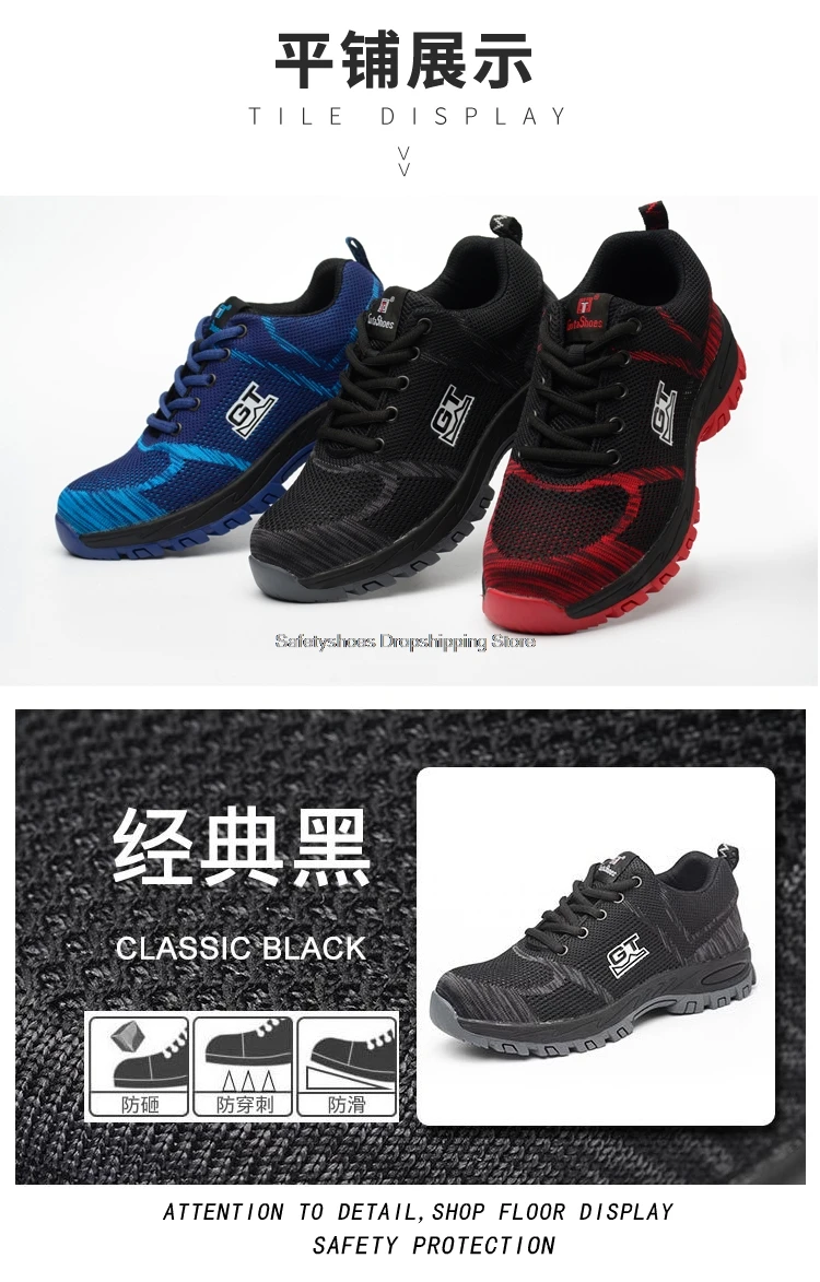 Неразрушаемая защитная обувь для мужчин, сетчатые дышащие рабочие ботинки со стальным носком и защитой от ударов и ударов, Мужская импортная обувь, Прямая поставка