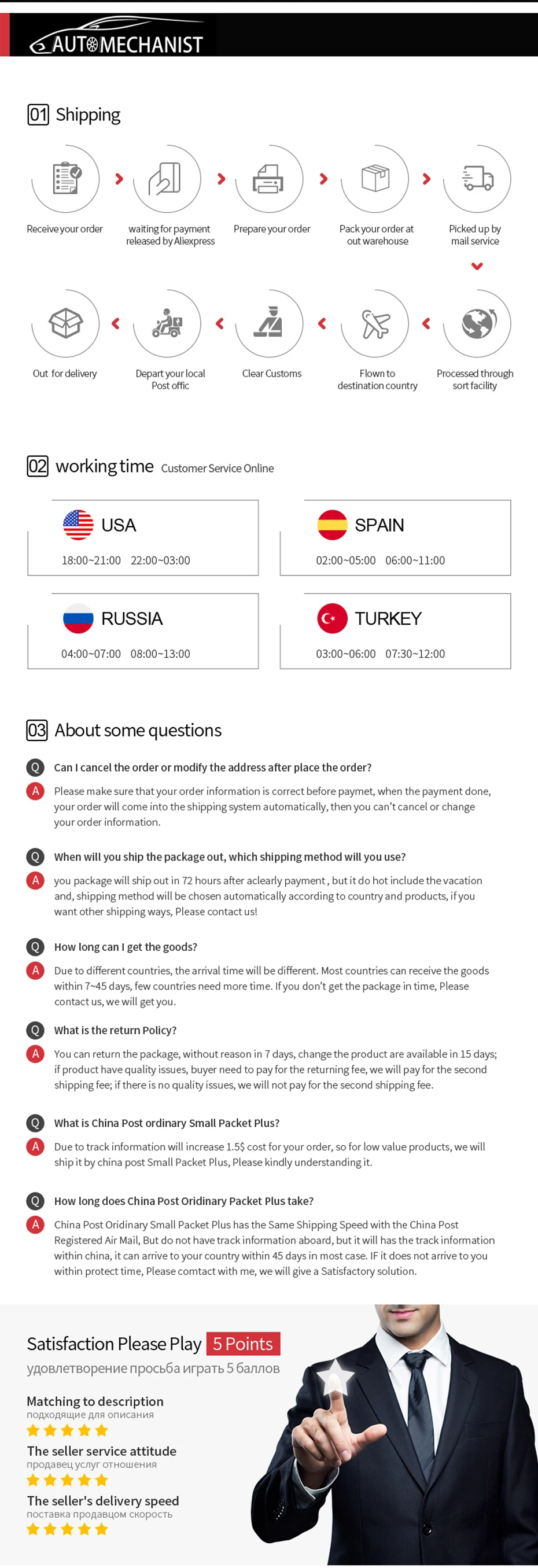 3. Пожалуйста, свяжитесь с нами, чтобы лучше решить любую проблему, прежде чем оставлять нейтральные или негативные отзывы.