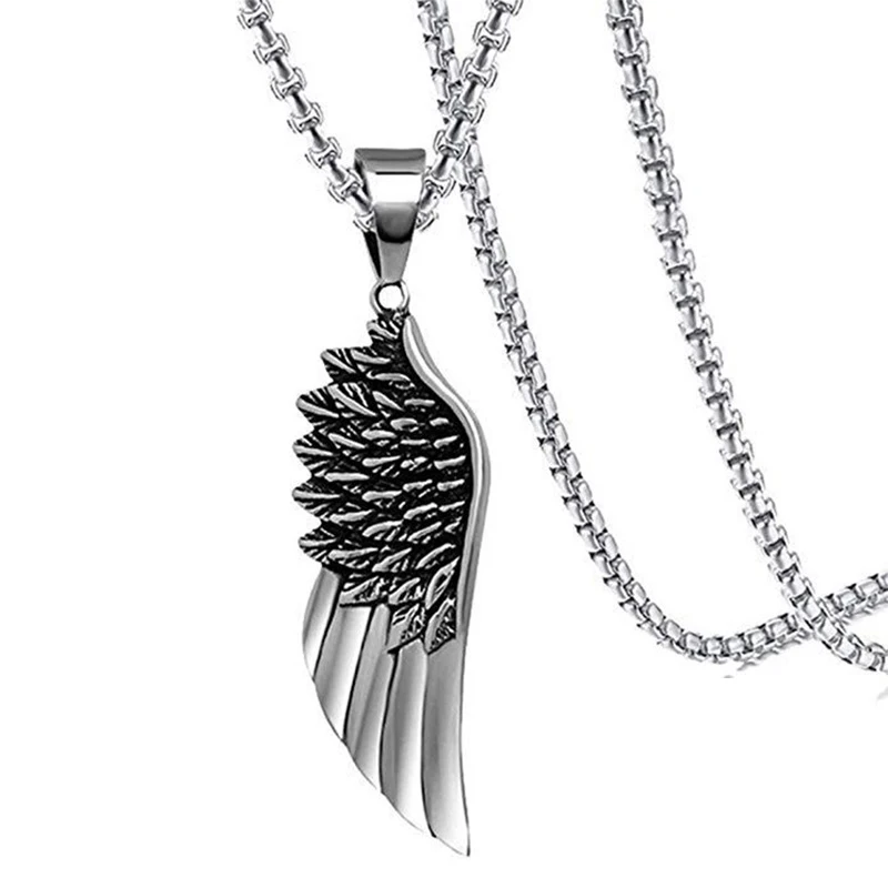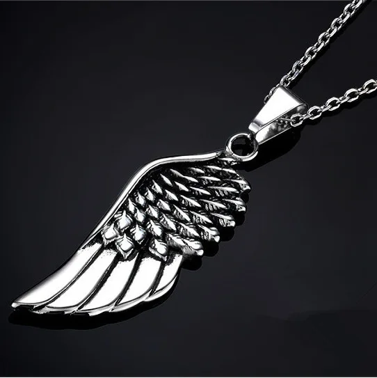 Наши продукты: 2021 новый дизайн винтажное перо Кулон Крылья Ангела ожерелье хип-хоп титановая стальная цепочка чокер мужское ожерелье аксессуары подарок