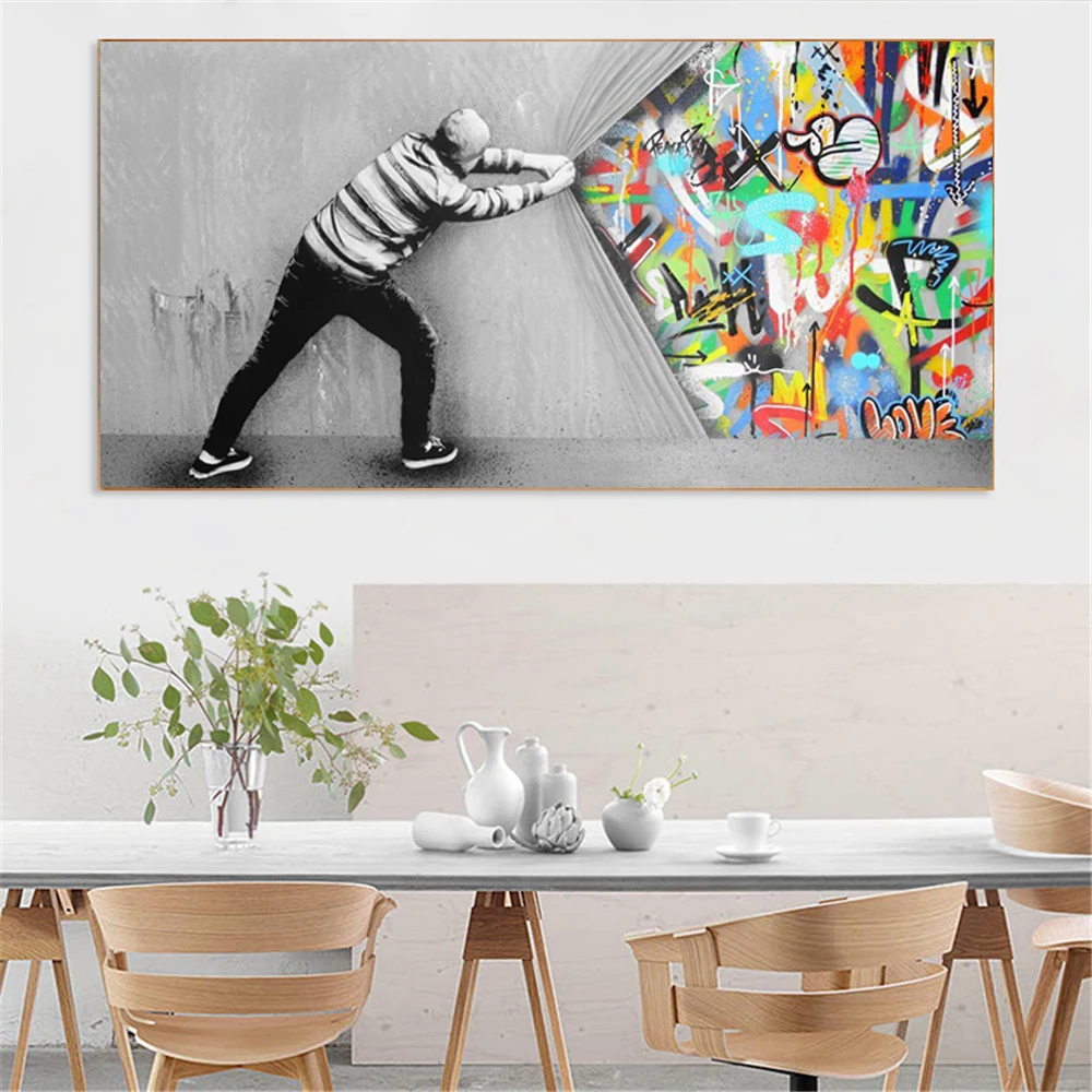 Граффити Бэнкси, искусство за занавеской, картины на холсте, постер...
