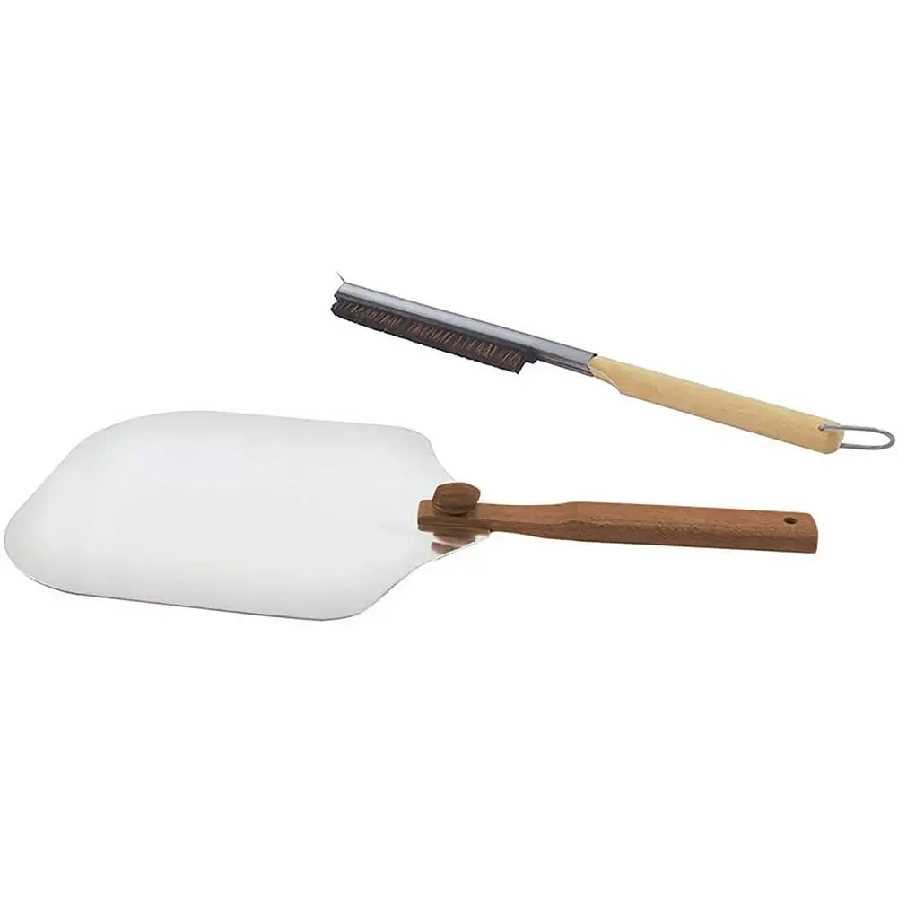 Щетка для чистки пиццы из нержавеющей стали с длинной ручкой, дерев...