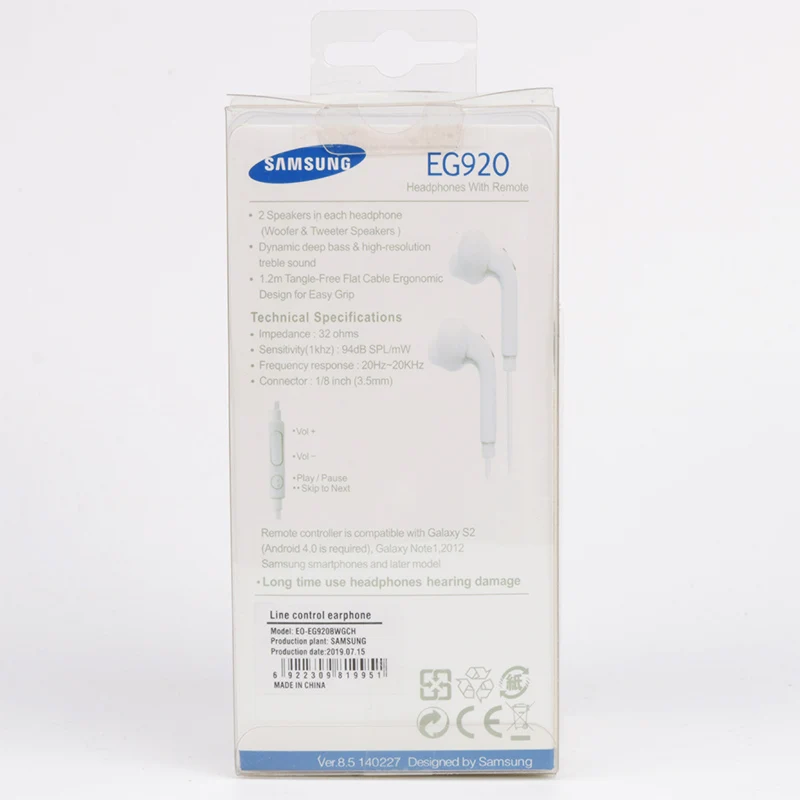 Оригинальные наушники SAMSUNG EG920 Note3 проводные гарнитуры с микрофоном для Samsung Galaxy S6 S7 S7edge S8 S9 S9 + мобильные телефоны Параметры продукта: 1. Бренд продукта: Samsung 2. Название продукта: Samsung EO-EG920BW 3. Цвет изделия: белый, черный 4. Подключение: Проводное 5. Способ ношения: в ухе 6. Интерфейс: 3,5 мм 7. Чувствительность: 93 дБ 8. Частотная характеристика: 20-20000 Гц 9. Длина: 1,2 м 10. Совместим с: для большинства смартфонов/ПК облицовка площадка/коврик/настил/Накладка/ноутбук вид: 1,2 колонки в каждом наушнике (НЧ-динамик и твитер колонки сосудов головного мозга) 2. Динамический глубокий бас и высокое разрешение тройной звук 3.1.5 м спутывающийся плоский кабель эргономичный дизайн для удобного захвата Примечание: Samsung offcial Специальная рекомендация для Galaxy S6/S6Edge S7/S7Edge сладкий совет: Samsung eg920bw поддерживает большинство смартфонов Android, но проводное управление поддерживает Мобильные телефоны Samsung, другие телефоны могут не поддерживать, если вы возражаете, пожалуйста, серьезно заказывайте. Спасибо.