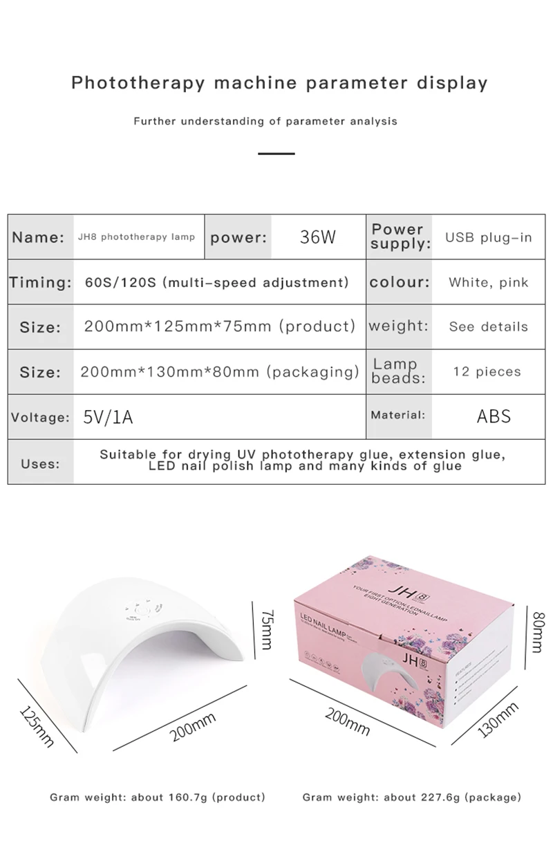 Может использоваться для сушки основного лака для ногтей, лака для ногтей, фототерапевтического клея и т. д.