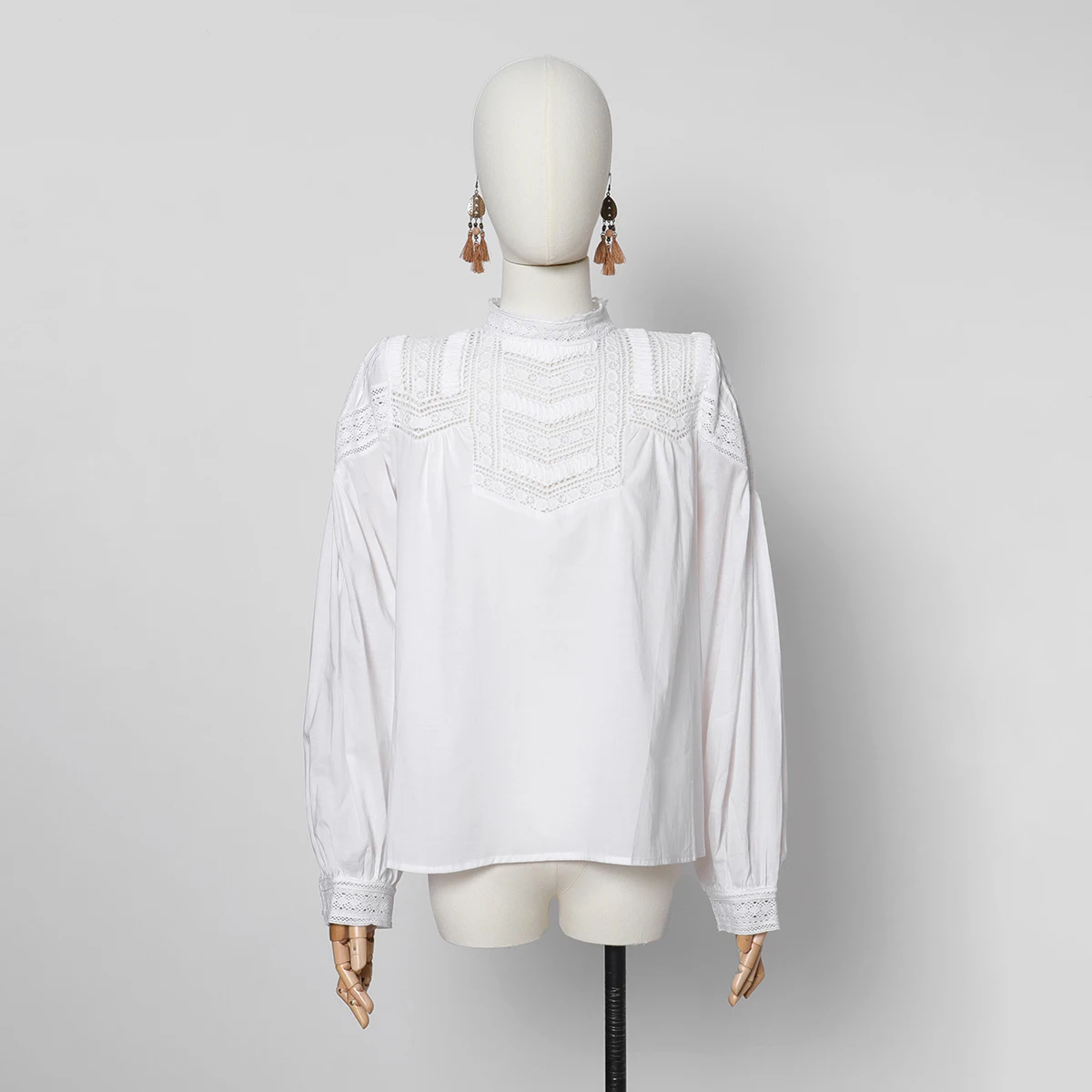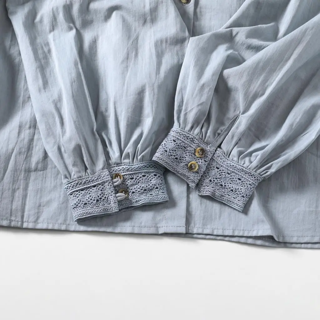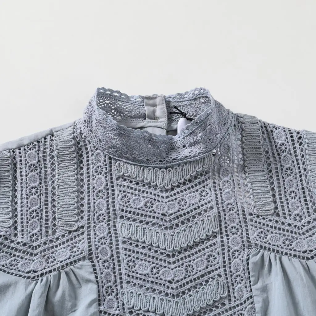 Женская блузка с вышивкой, с воротником-стойкой и длинным рукавом, кружевная, в стиле пэчворк, осенняя, винтажная