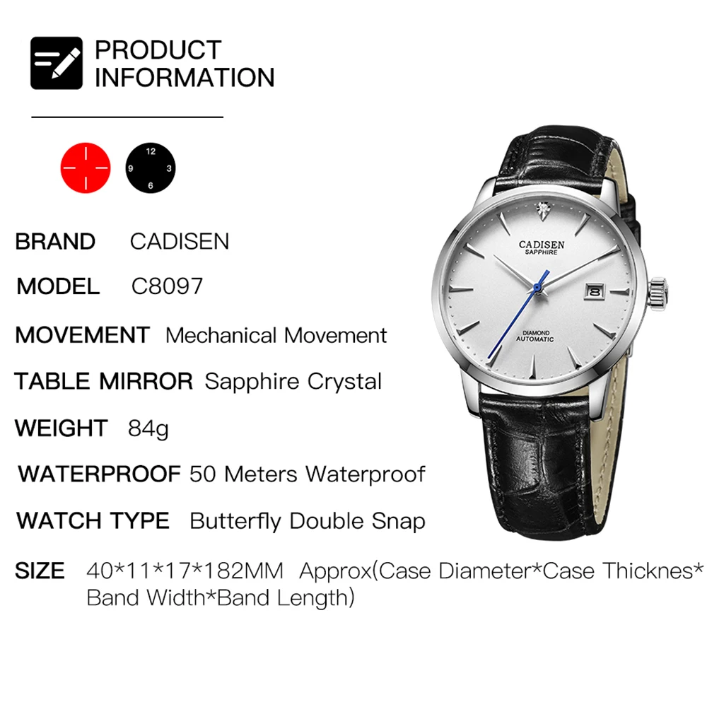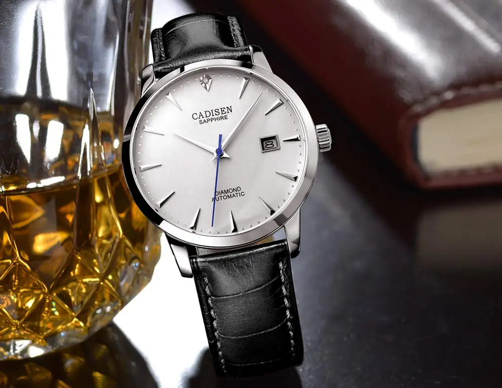 Часы мужские механические водонепроницаемые, с сапфировым стеклом и натуральным бриллиантом