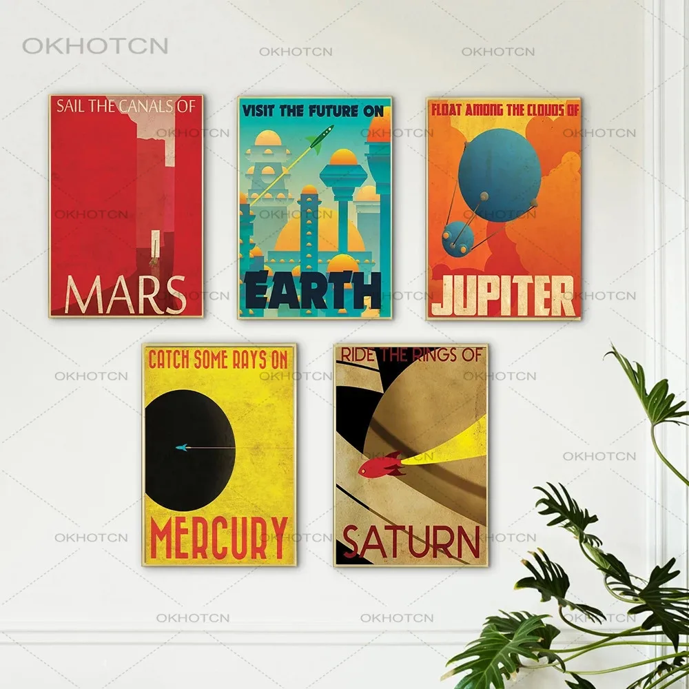 Винтажные постеры в стиле ретро среднего века для путешествий, Подарочная картина с изображением планеты Марса, Настенная картина, декор для гостиной, дома