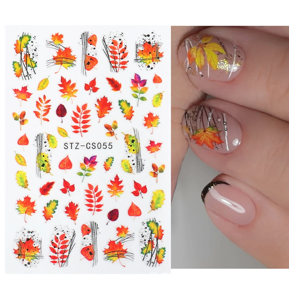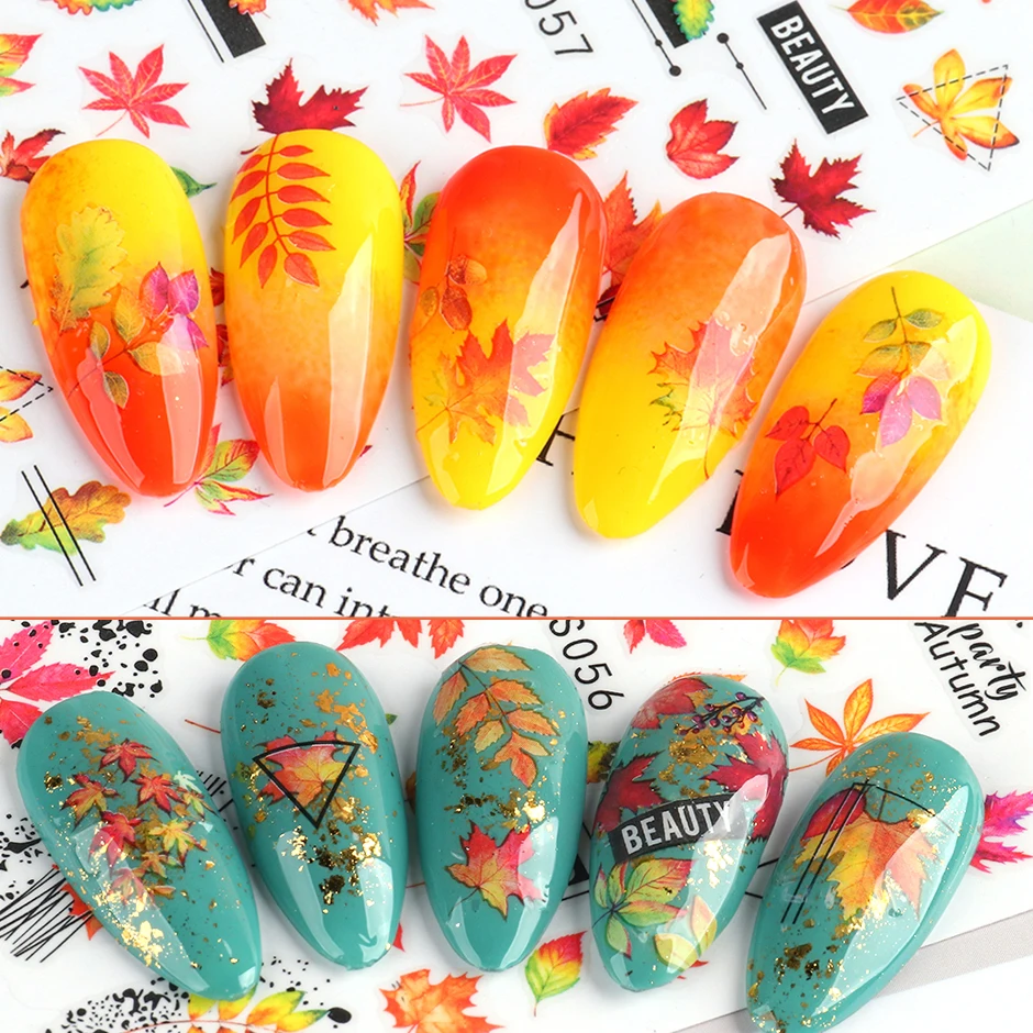 3D дизайн ногтей, кленовый лист, наклейки для ногтей, наклейки сделай сам, самоклеящиеся художественные слайдеры, татуировки для подвесок, осенний Маникюр NTSTZCS050-057