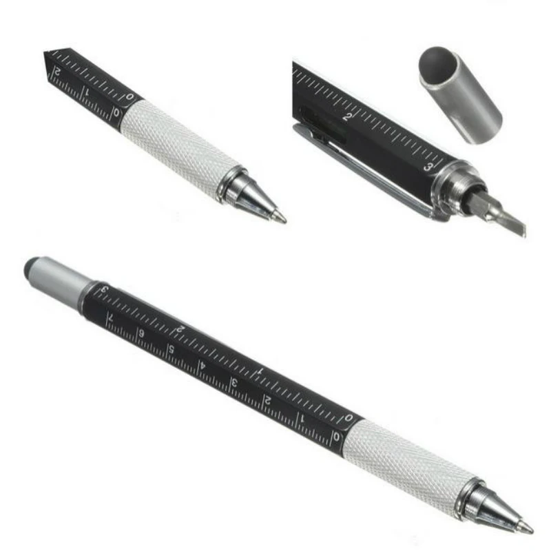 Шариковая ручка-стилус 6 в 1 со спиртовым уровнем, линейка, отвертк...