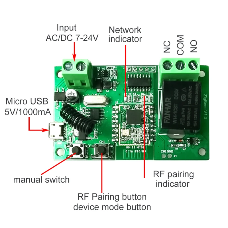 Поддерживает удаленное Включение или выключение подключенных приборов, например светильник, электрический чайник, электрическая рисоварка, электрический занавес, контроль доступа и т. Д.