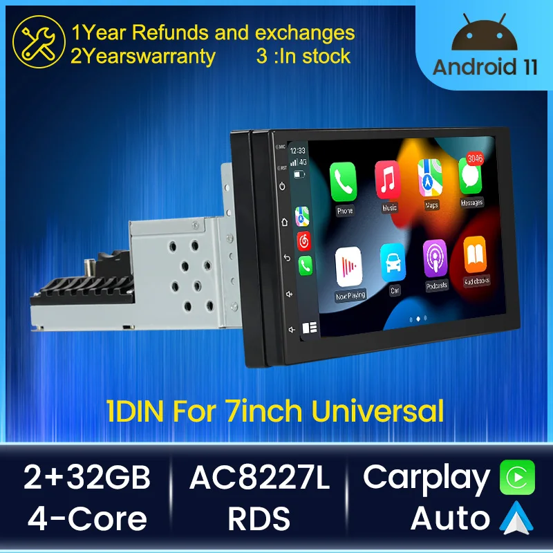 2 + 32 ГБ Android 11 автомобильный мультимедийный плеер 1DIN универсальный GPS-навигатор головное устройство радио аудио стерео Carplay и авто WIFI BT