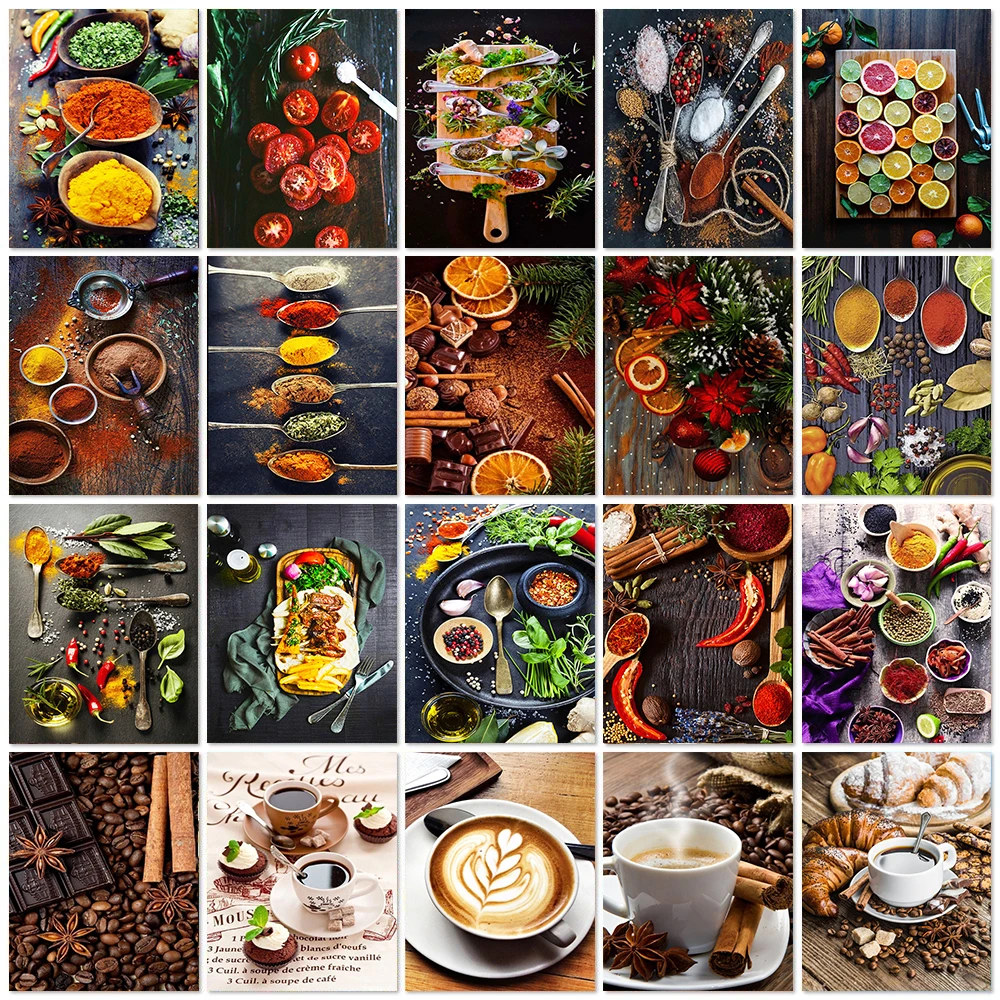 Круглая алмазная живопись для кухни Спайс 5D алмазная вышивка кофе Набор для вышивки крестиком Мозаика Стразы картина стены кухонный Декор