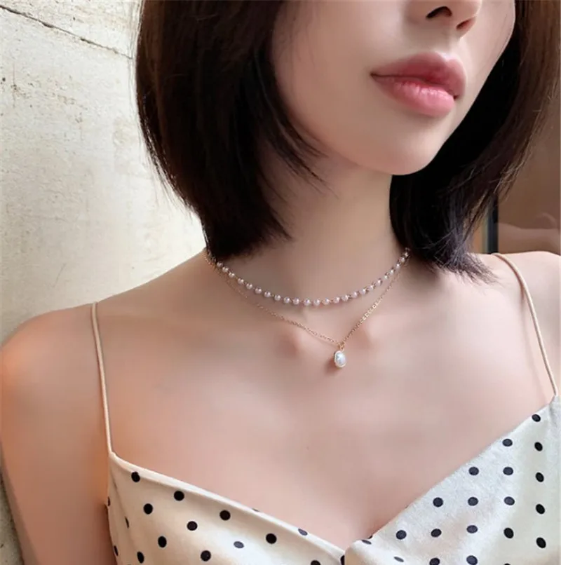 2021 Новое корейское модное ожерелье-чокер с жемчугом женское темпераментное элегантное Двухслойное ожерелье-цепочка с подвеской для ювелирных изделий подарок для девушки