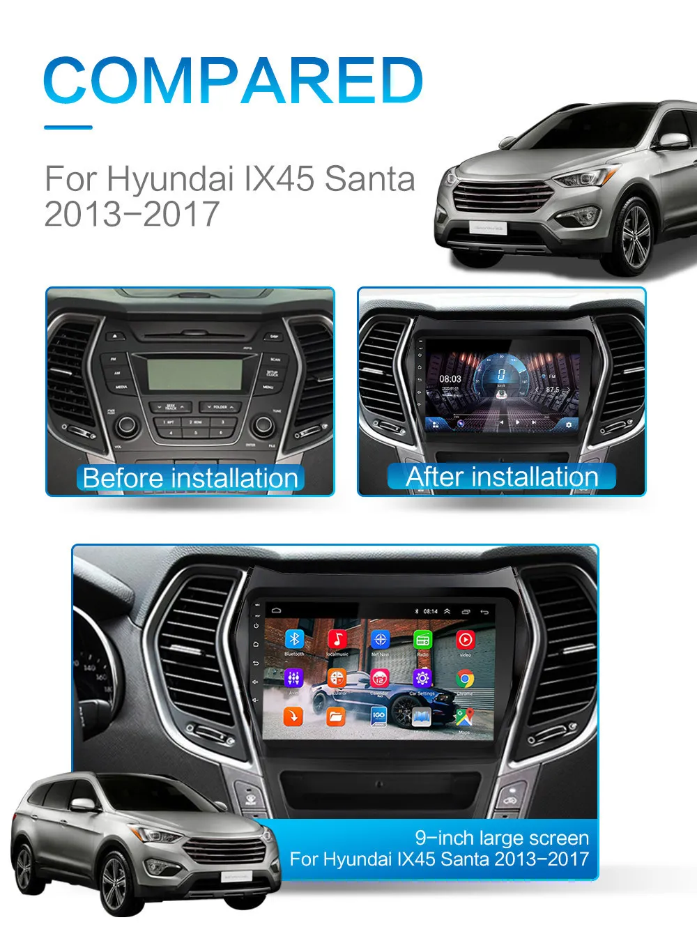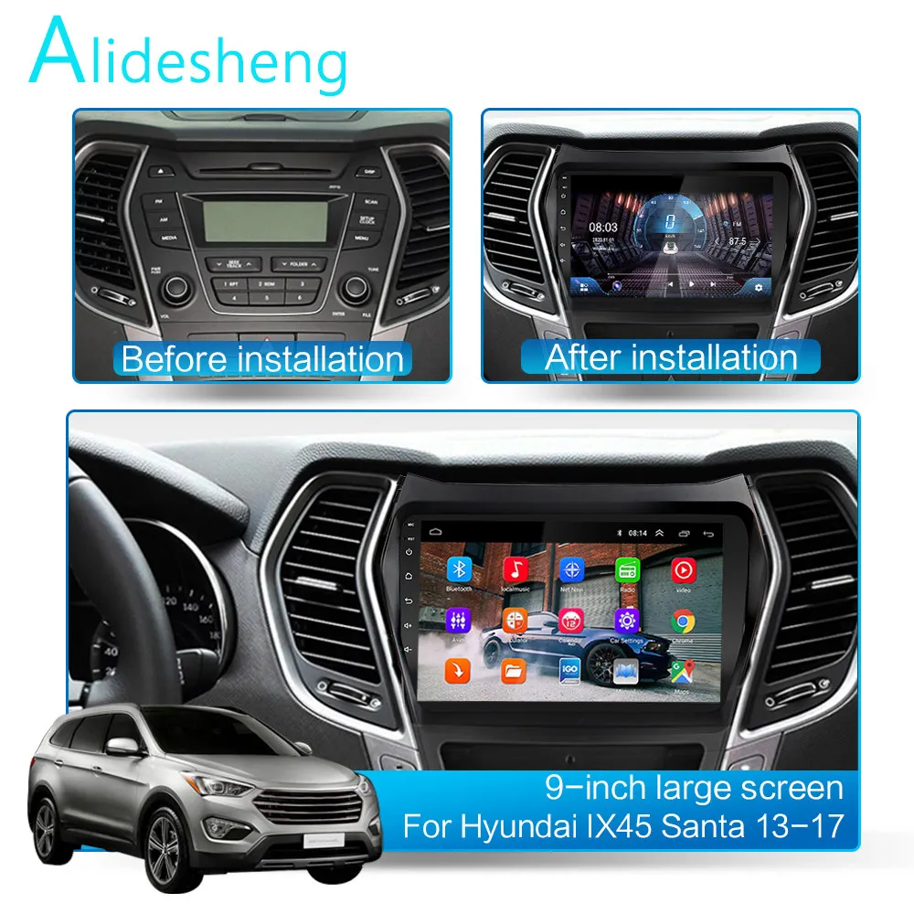 Android 9,0 автомобильное радио для Hyundai Santa Fe IX45 Android 2013 2014 2015 2016 2017 9 дюймов 1024*600 восемь ядер wifi Bluetooth Видео Аудио мультимедиа 2 din автомобильный dvd плеер