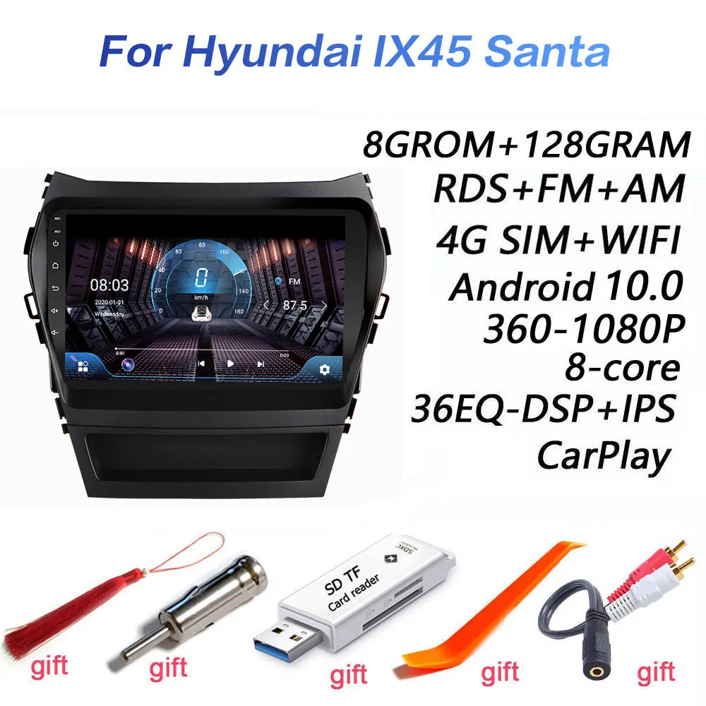 8G + 128G DSP 2 Din Android 10.0 4G NET Автомобильный радиоприемник Мультимедийный видеоплеер для Hyundai Santa Fe IX45 Android 2013 2014-2017 Carplay