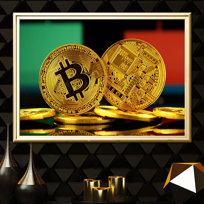 Постер и принты биткоинов в скандинавском стиле, роскошное настенное искусство, Картина на холсте, Современное украшение для дома и гостиной, модульные картины