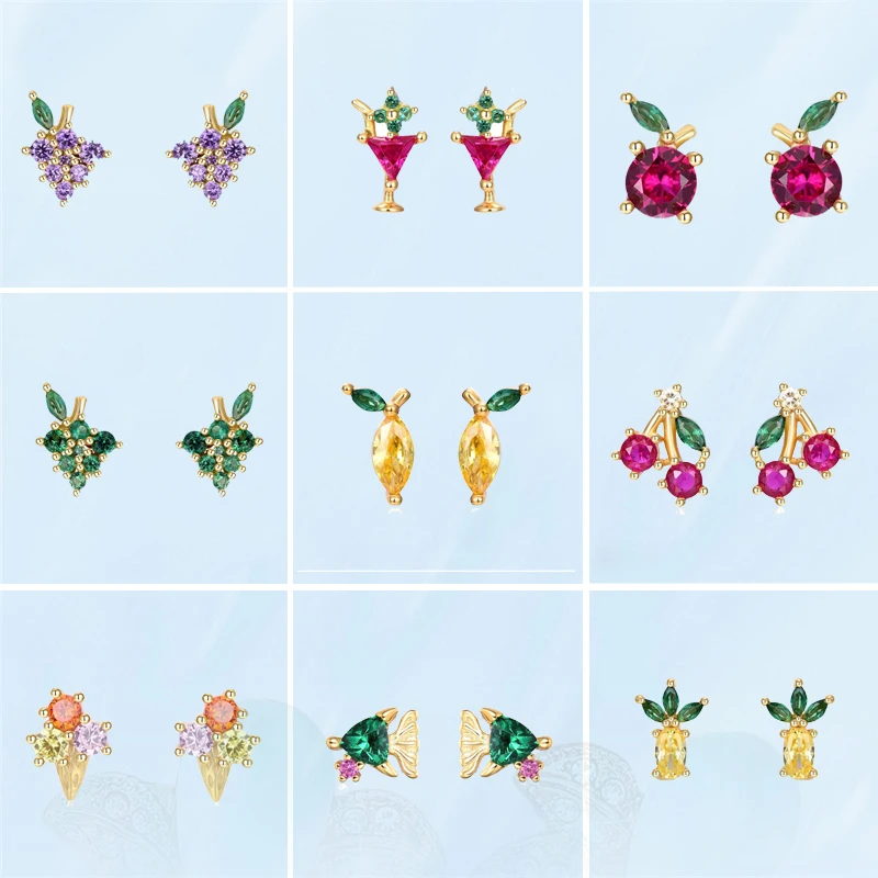 серьги 2021 тренд новинка серьги женские пирсинг обманка jewelry-accessories Женские необычные серьги-гвоздики с аметистом, зеленым виноградом zara woman 2021 concept club время приключений серьги лисички серебро