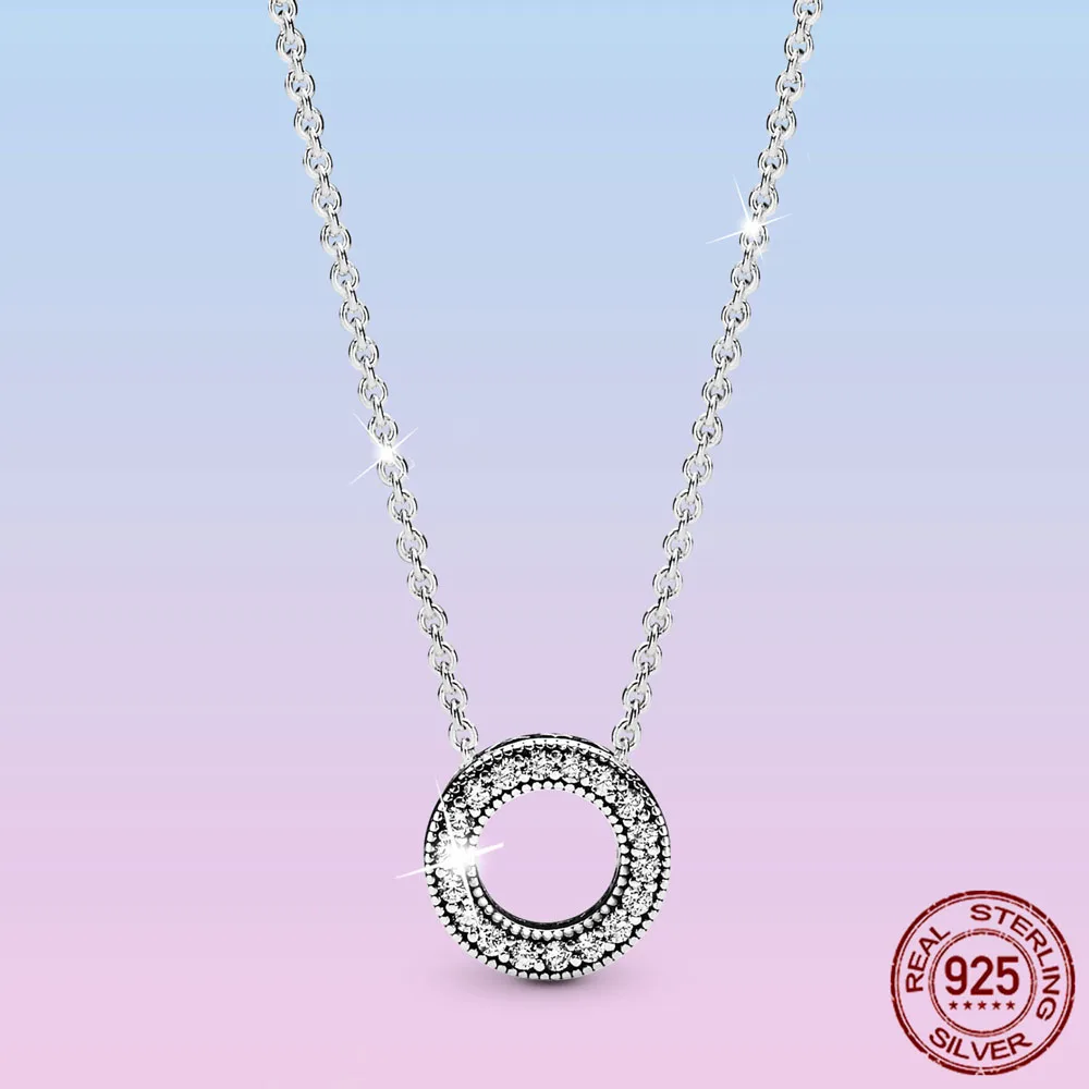 Элегантное ожерелье из серебра 925 пробы с круглым кольцом, кулон из кубического циркония, не вызывает аллергии, для женщин, ювелирные изделия для вечеринки, свадьбы, помолвки