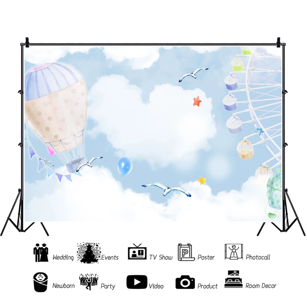 Laeacco детский душ мультфильм воздушный шар колесо обозрения белые облака Детский День Рождения Вечеринка индивидуальный фото фон