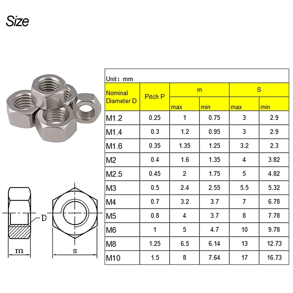 100 шт. шестигранный гайка болт m1.2 m1.4 m1.6 m2 m2.5 m3 m4 m5 m6 m8 болты и гайки из углеродистой стали шкив Nylock самоблокирующаяся гайка