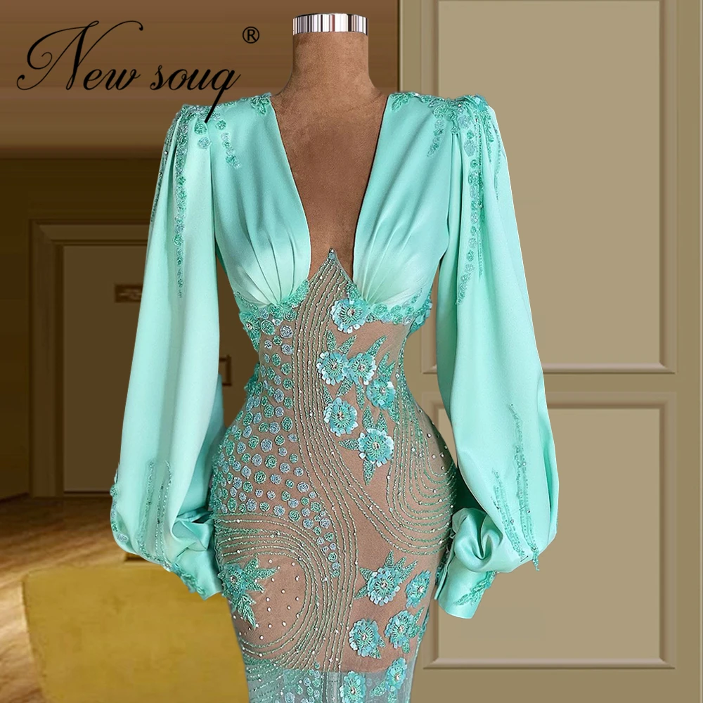 2021 вечерние платья с бисером на заказ, свадебное платье с глубоким V-образным вырезом для выпускного вечера, иллюзионное арабское вечернее платье, платье знаменитости Дубая