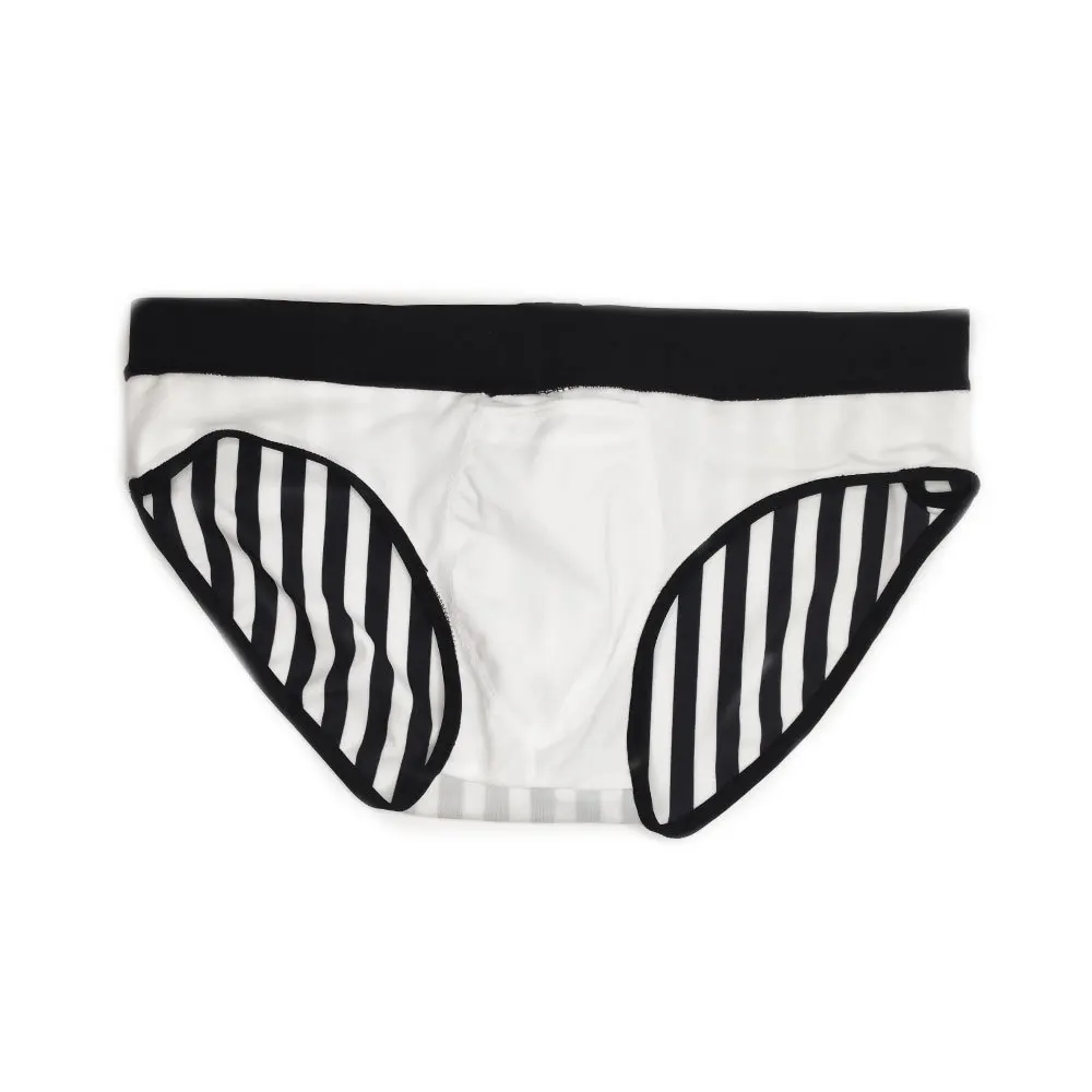 Трусы-бикини мужские в черно-белую полоску, пикантные плавки с зани...