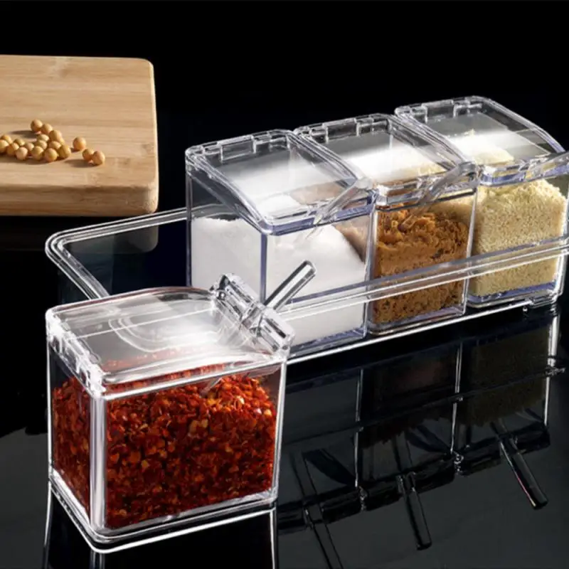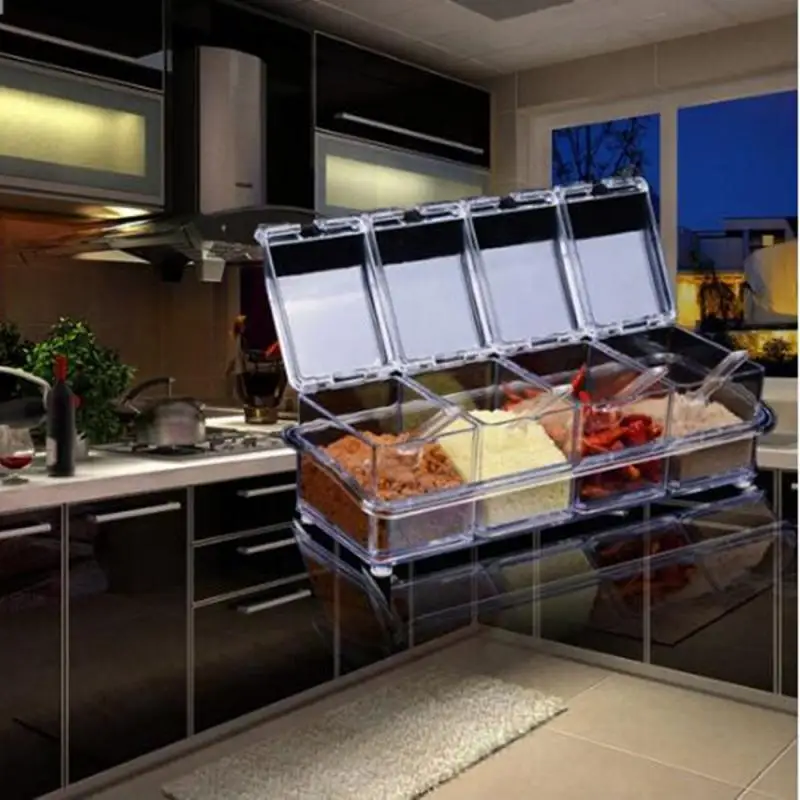 Прозрачный контейнер для приправ с 4 отделениями, стойка для хранения, контейнер для конфет, Кухонный Контейнер для специй, буфета