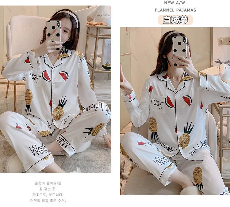 Наименование: шелковые пижамы из искусственного атласаПодходящий сезон: весна-лето-осеньРазмер: M L XL XXLСтиль: корейская мода