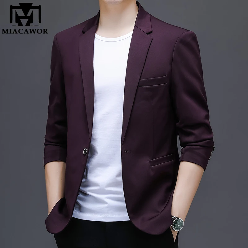 Новый классический однотонный Блейзер, мужской костюм в Корейском стиле, Повседневная облегающая куртка, Мужская одежда J693