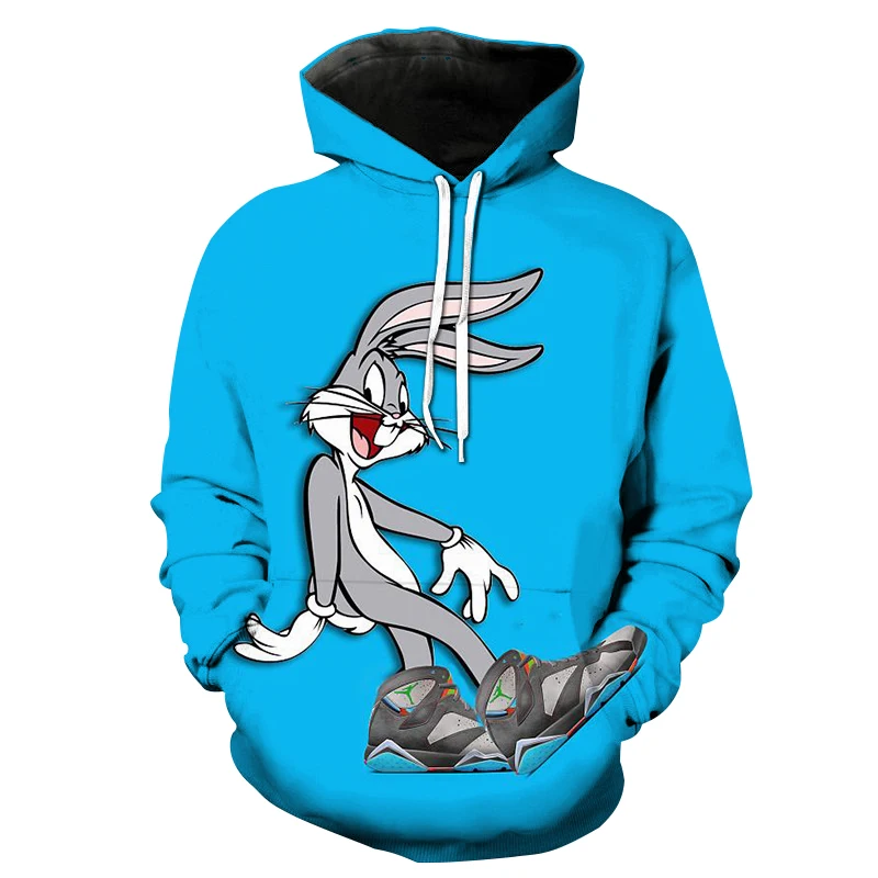 Толстовка мужская с капюшоном, модная повседневная одежда с 3D-принтом жуков, кроликов, аниме свитшот в стиле Харадзюку, весна-осень