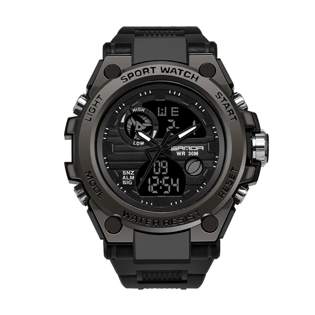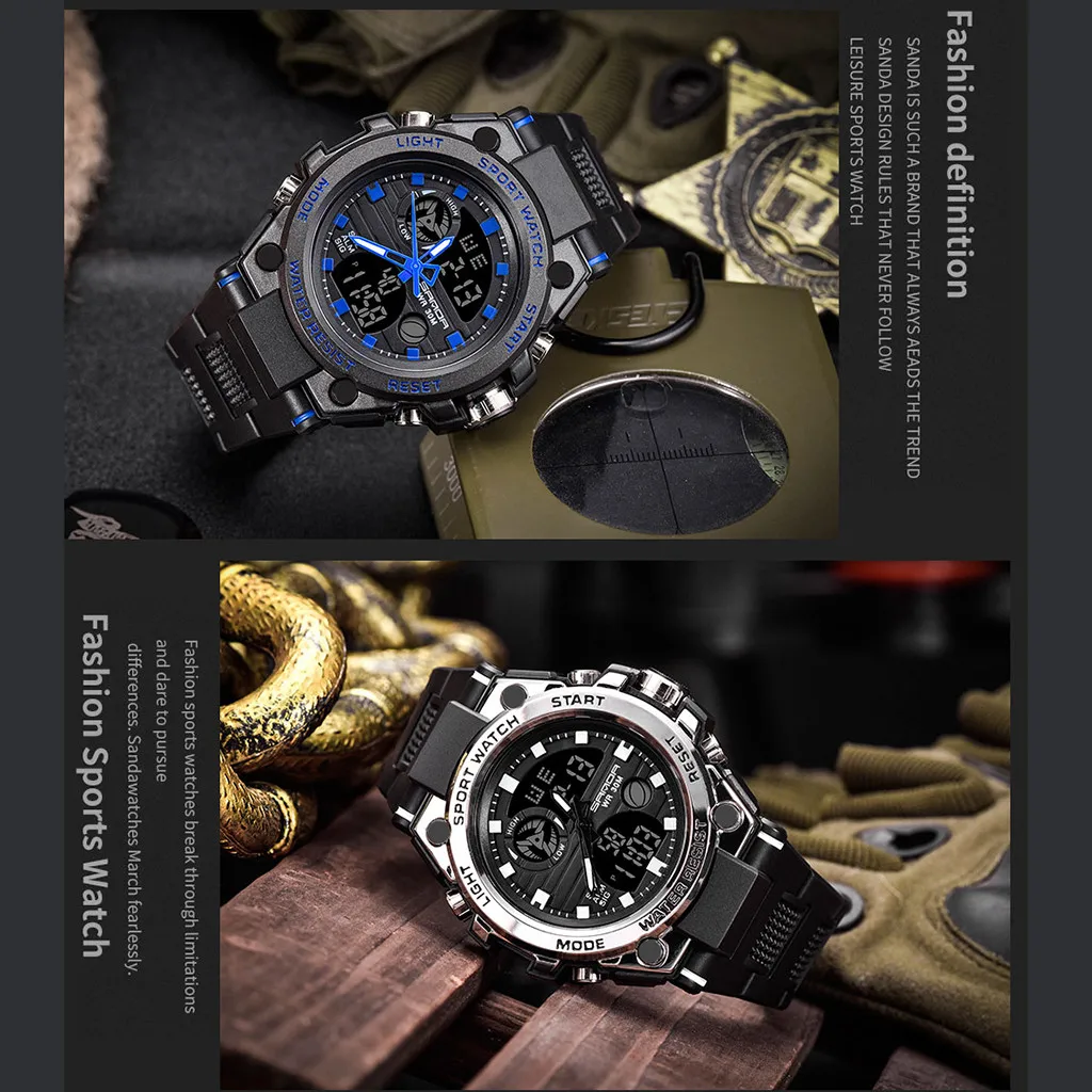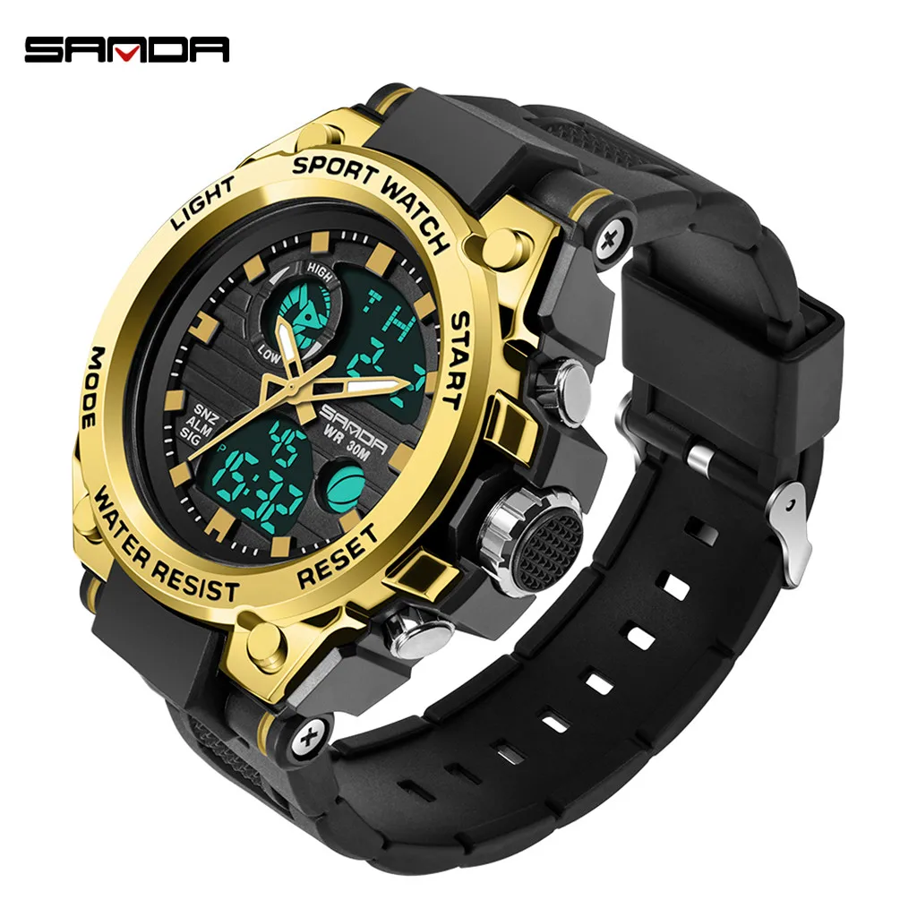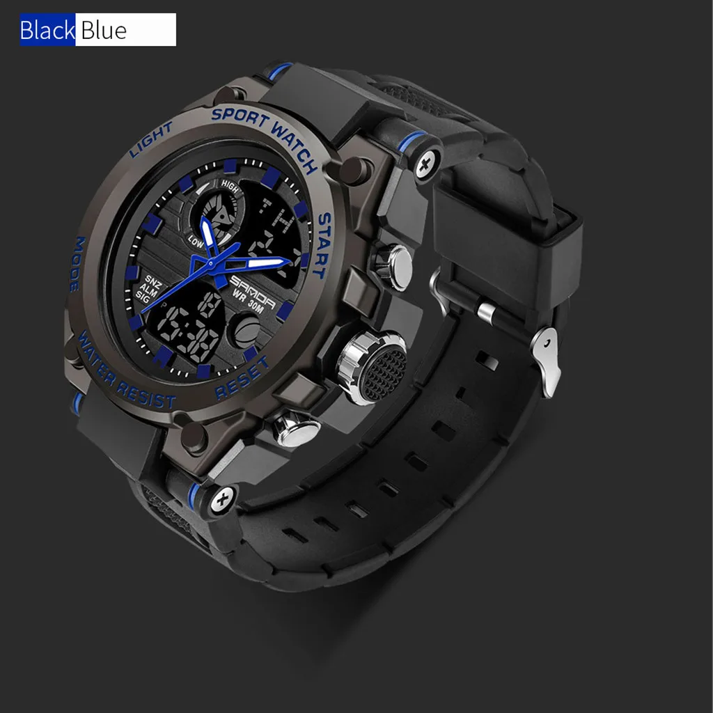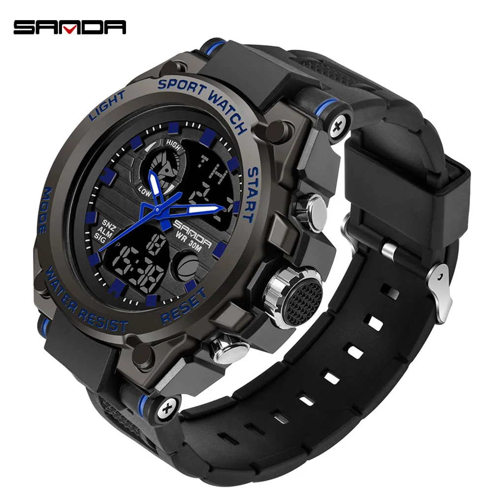 Sanda мужские спортивные часы с двойным дисплеем аналоговые цифросветодиодный светодиодные электронные наручные часы