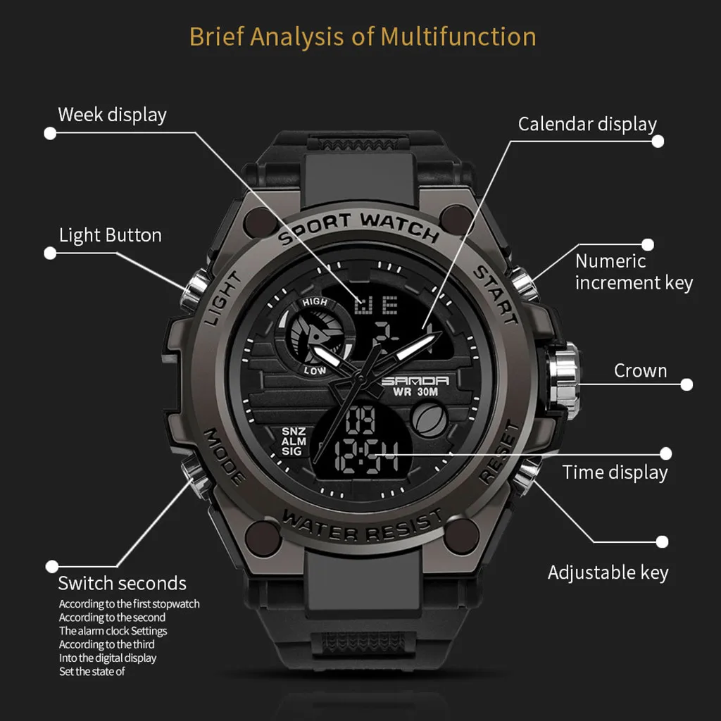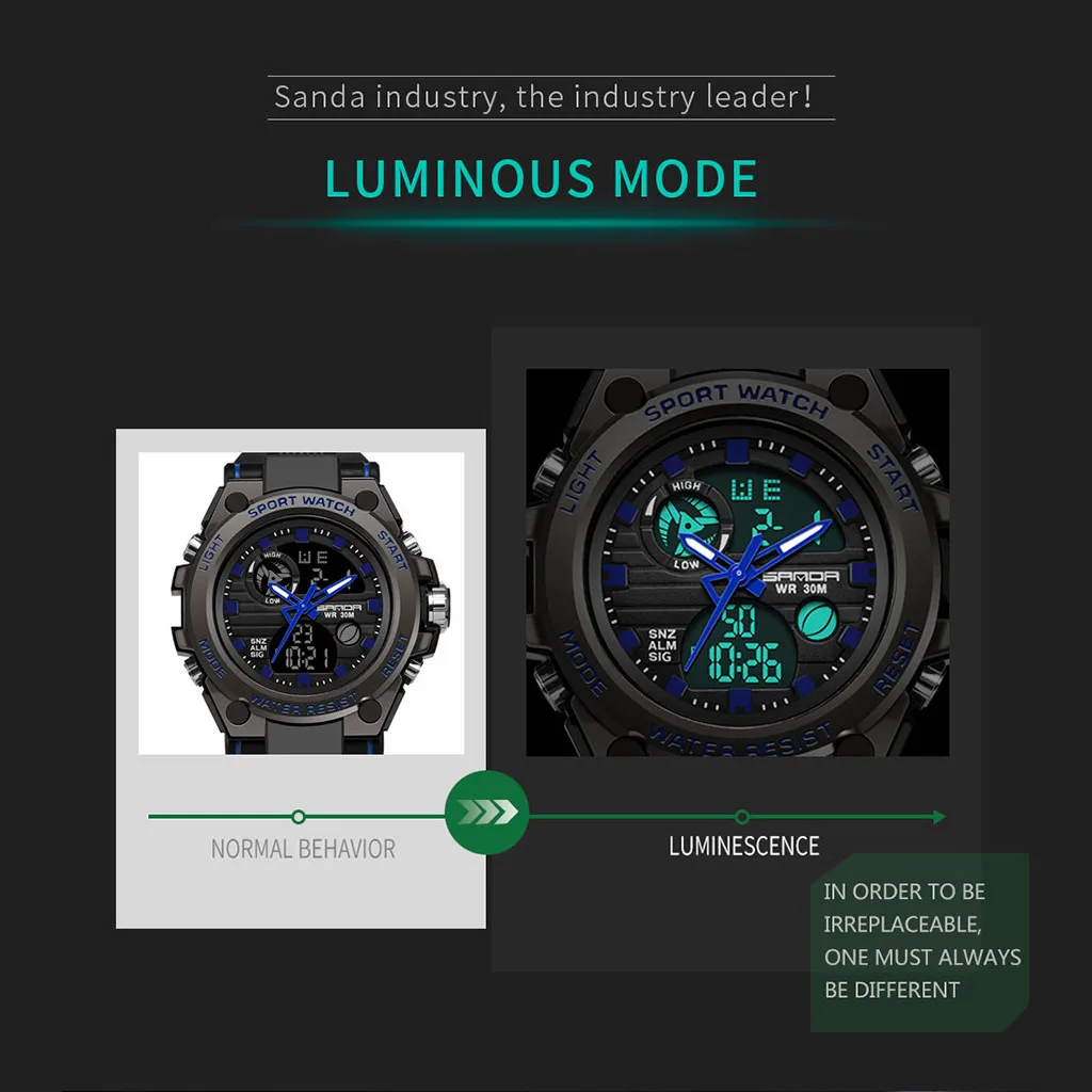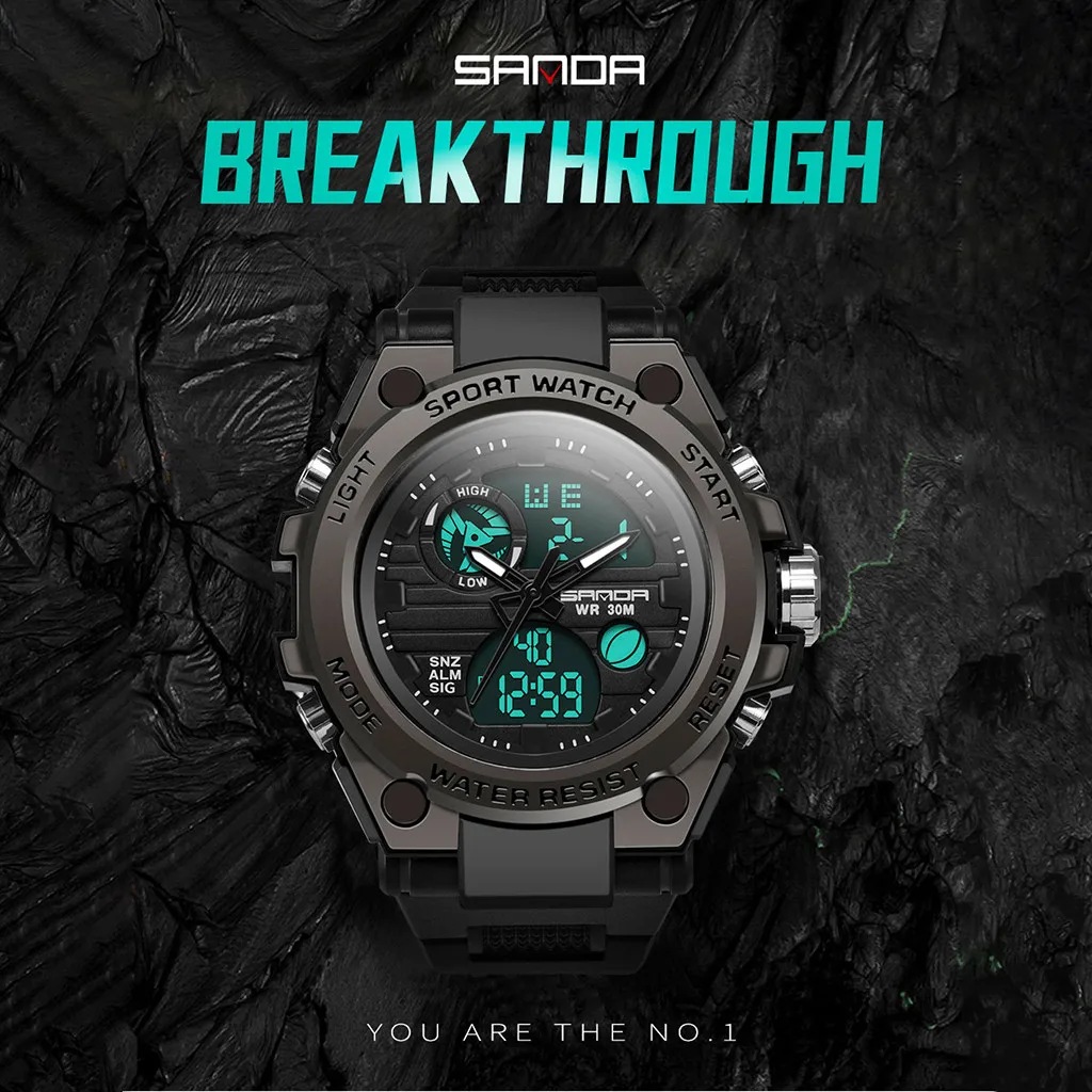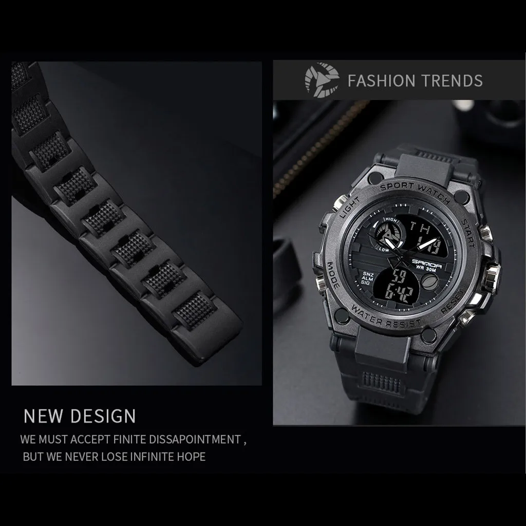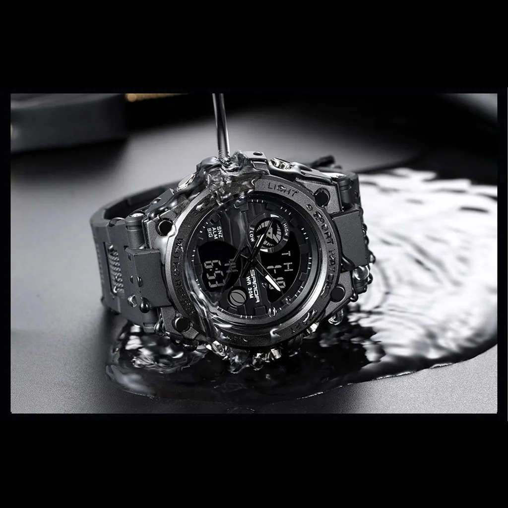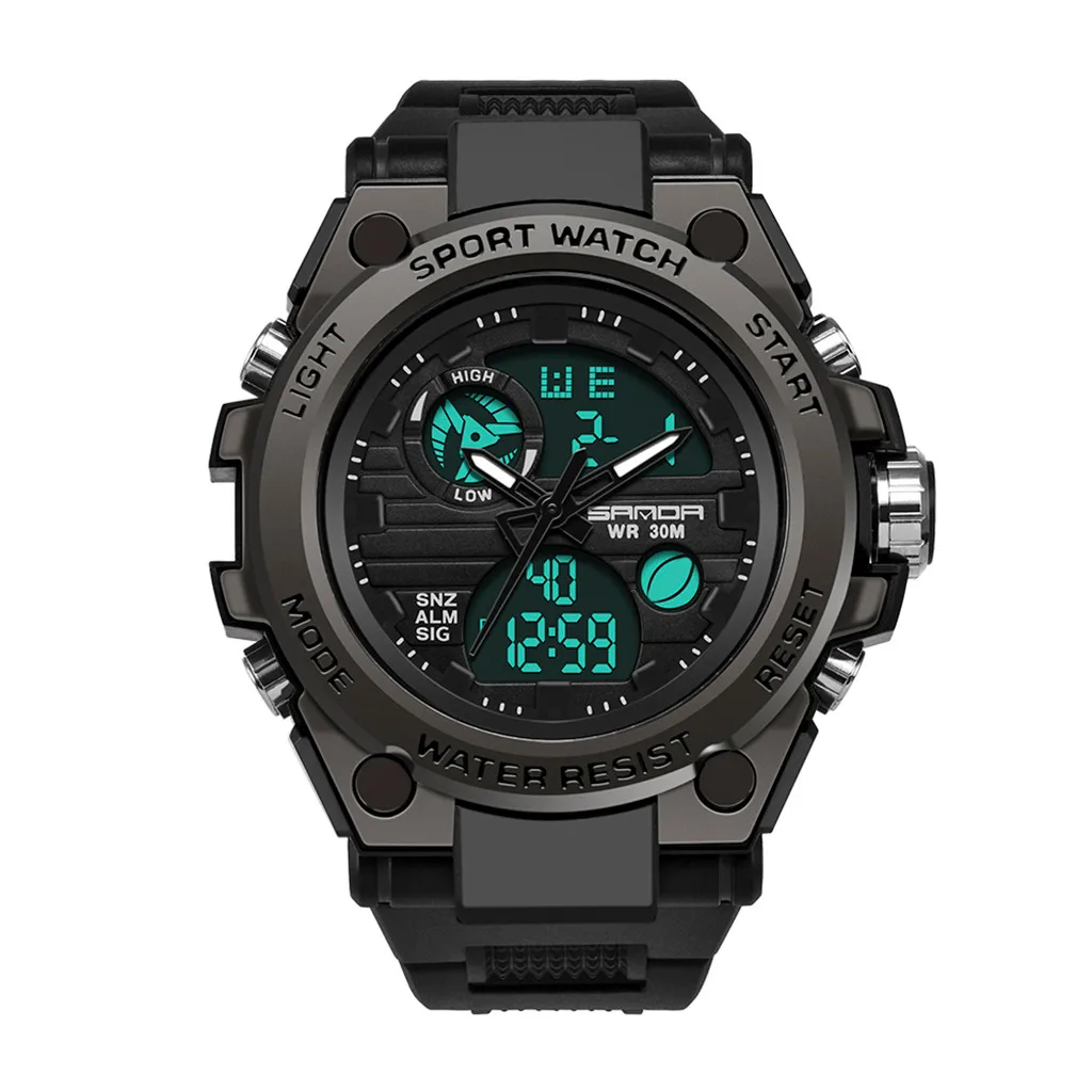 Sanda мужские спортивные часы с двойным дисплеем аналоговые цифросветодиодный светодиодные электронные наручные часы