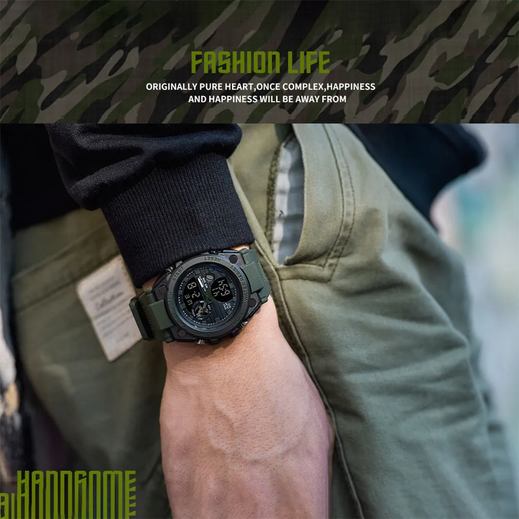 Мужские спортивные часы с двойным дисплеем, аналоговые цифровые светодиодные электронные наручные часы, модные мужские часы, мужские часы