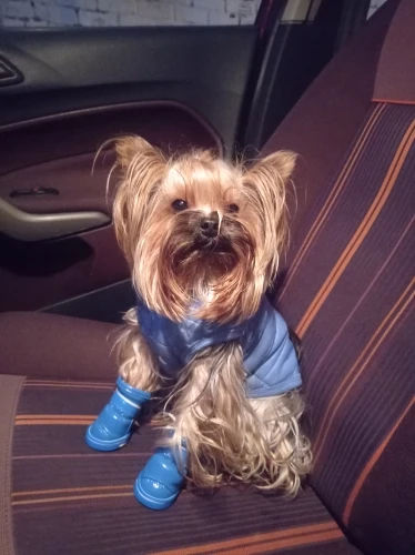 Отлично подошли на Йорка! Цвет чёрный вместо темно-синего, но ничего страшного. Ремешок, который вокруг лапки, на липучке, длиннее, чем был у нас раньше. Ботиночки не слетают. Ребёнок ходил по дому на улице ещё не погода тестить
