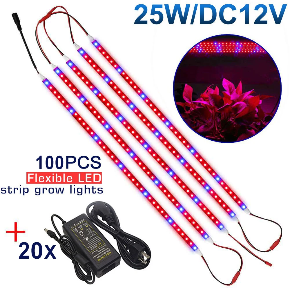 Оптовая продажа, 100 шт.лот, лампа для выращивания 50 см, светодиодная лента для выращивания растений в аквариумах, теплицах, гидропонных растениях с источником питания 12 В, 5 А