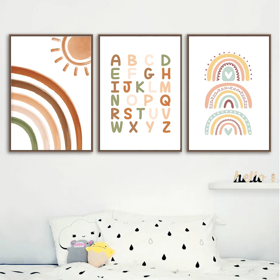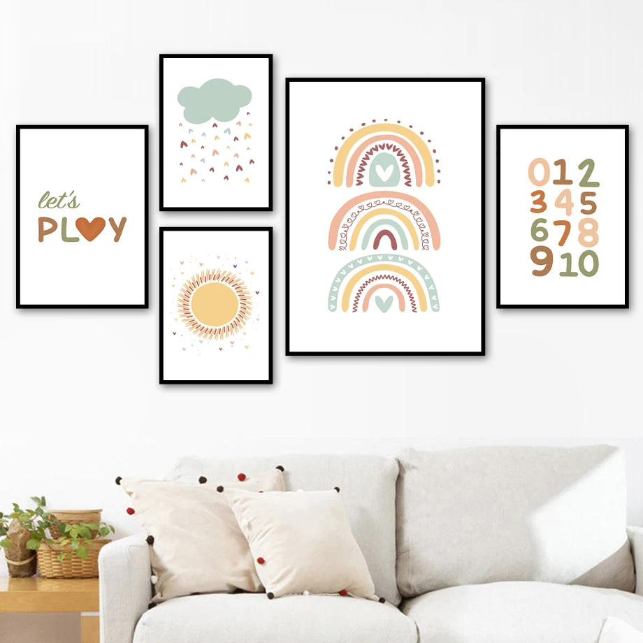 Цифры и алфавит сердца Радуга солнце ABC скандинавский плакат настенный художественный Принт Холст Картина настенные картины Детская комната Декор для игровой комнаты