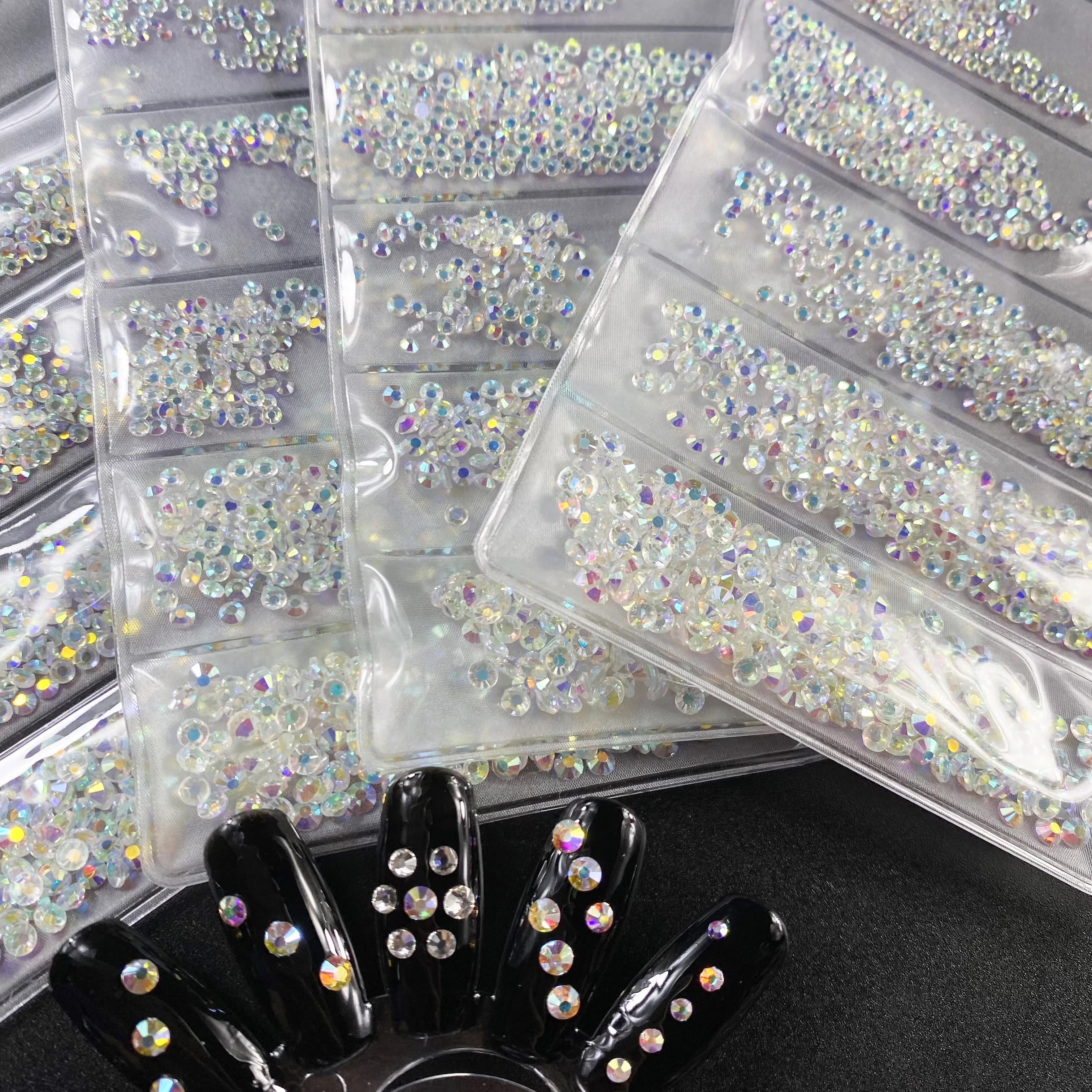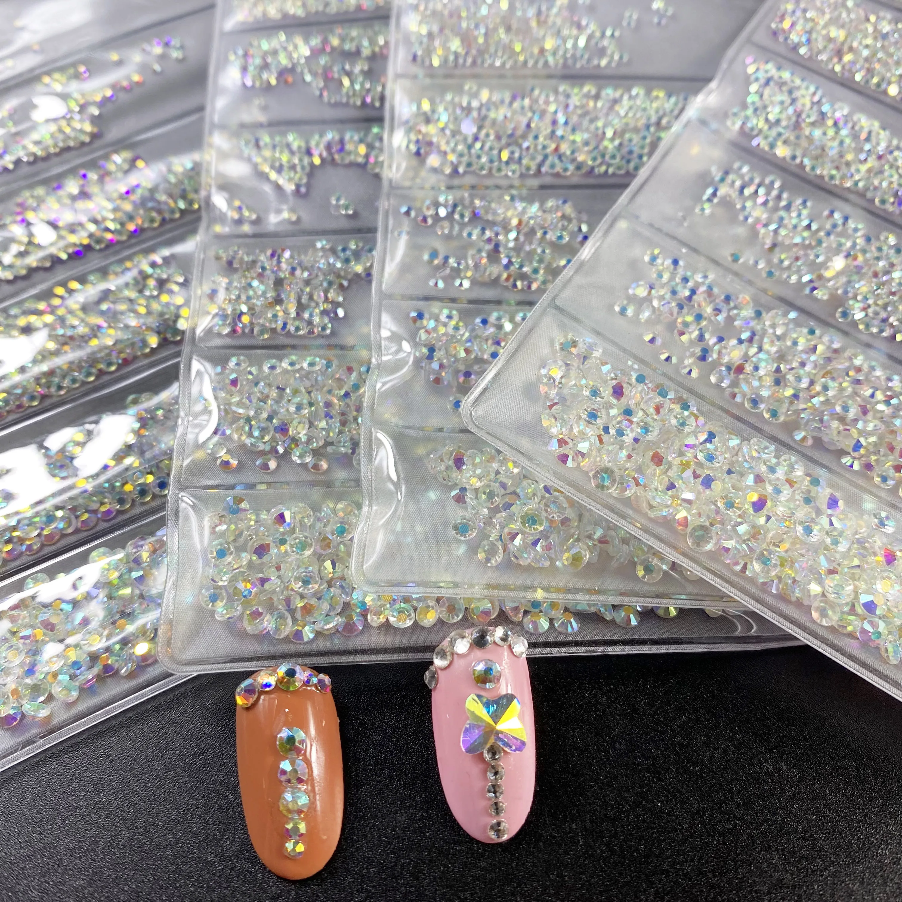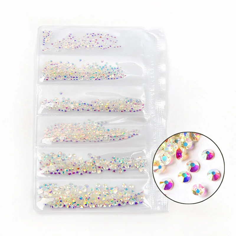 Прозрачные стразы AB для дизайна ногтей разных размеров, 1440 шт., стразы с плоским основанием, камни без горячей фиксации для 3D украшения ногтей