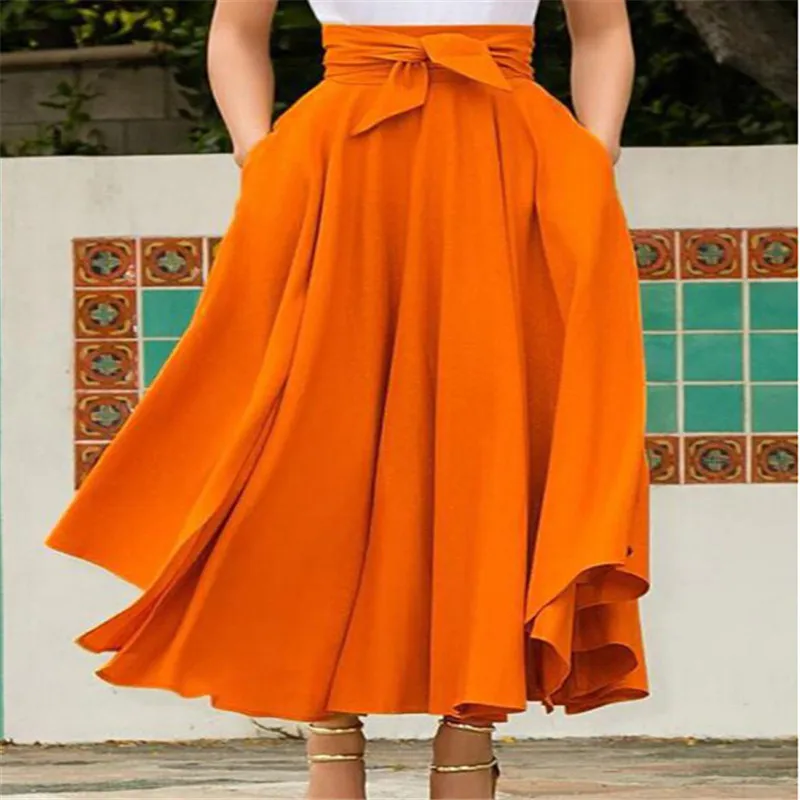Юбка-макси Женская Плиссированная, однотонная, с завышенной талией, с бантом на поясе, лето 2021