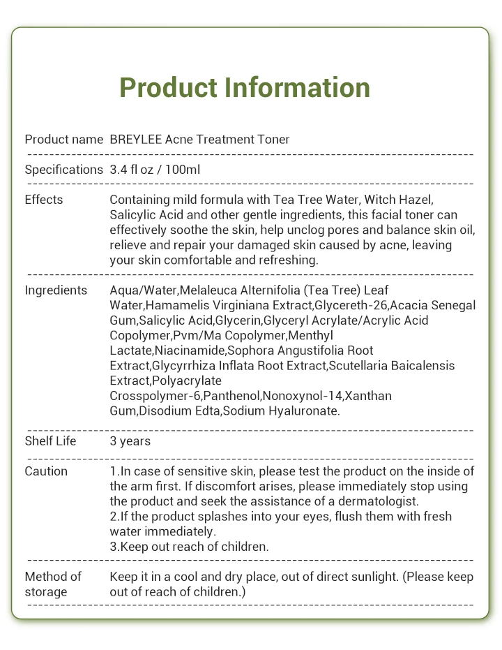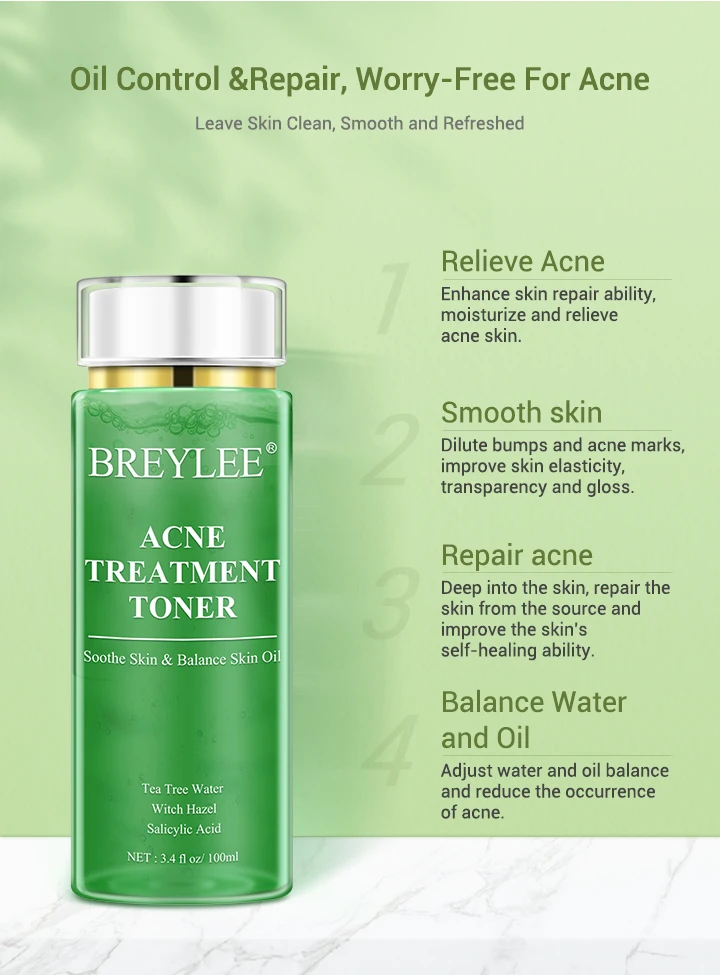 Мягкое успокаивающее средство для устранения акнеЗащита от акне, глубокое увлажнениеТонер для лечения акне BREYLEE