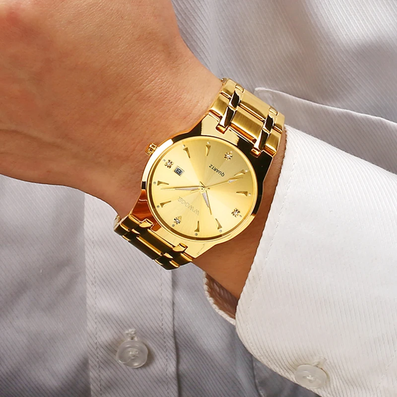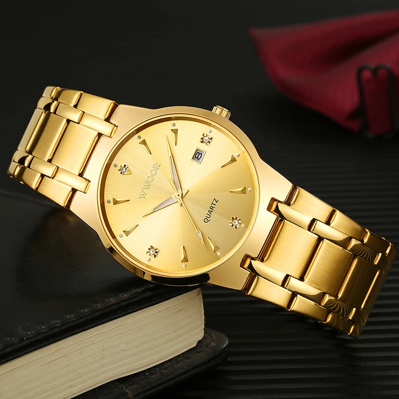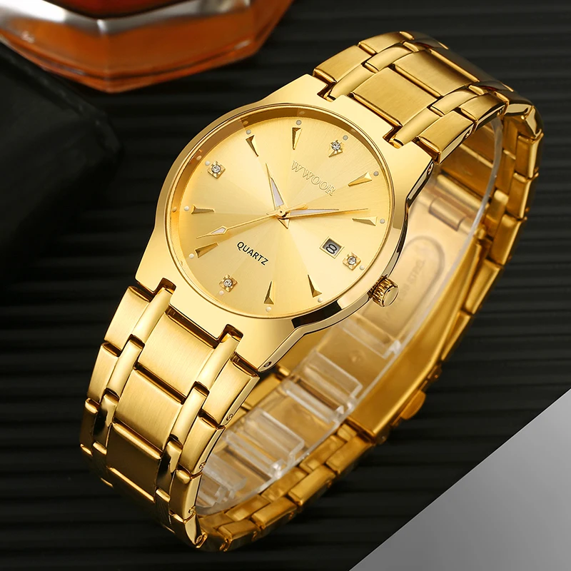 Часы WWOOR мужские Кварцевые водонепроницаемые, спортивные брендовые Роскошные деловые наручные золотистые