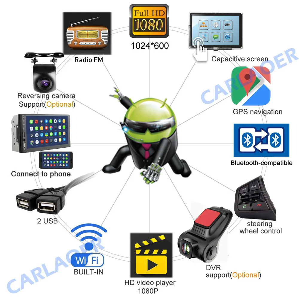 2 din Автомобильный Android Радио мультимедийный плеер 9 дюймов 2G ...