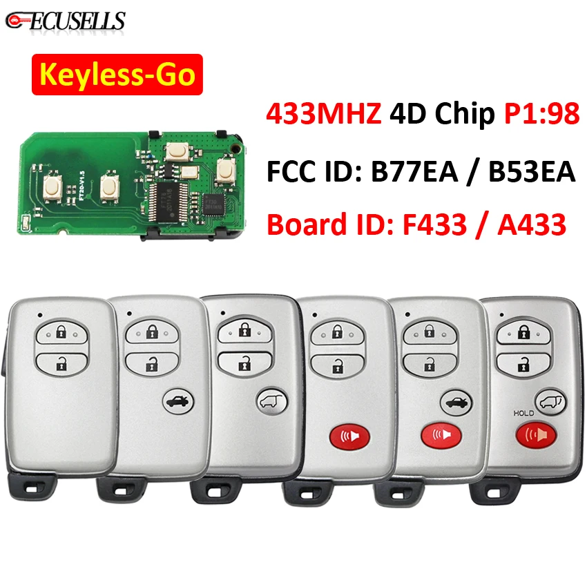 Безключевой Go Remote автомобильный смарт ключ-брелок ASK FSK 433Mhz 4D Chip FCC ID: B77EA B53EA P1 98 для Toyota Land Cruiser 2007-2016