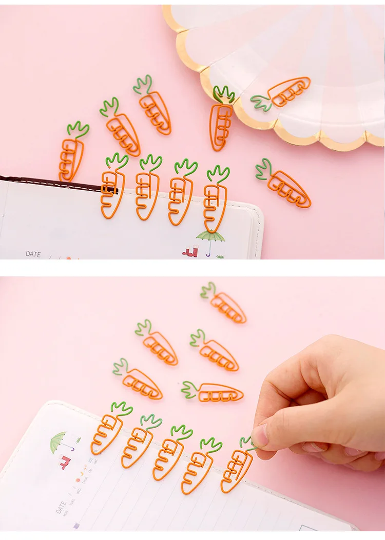 10 шт.лот, Kawaii, форма моркови, школа, офис, поставка, бумага, фотографии, клип, Закладка, подарок, Канцтовары для книг, аксессуары, подарки для учителя