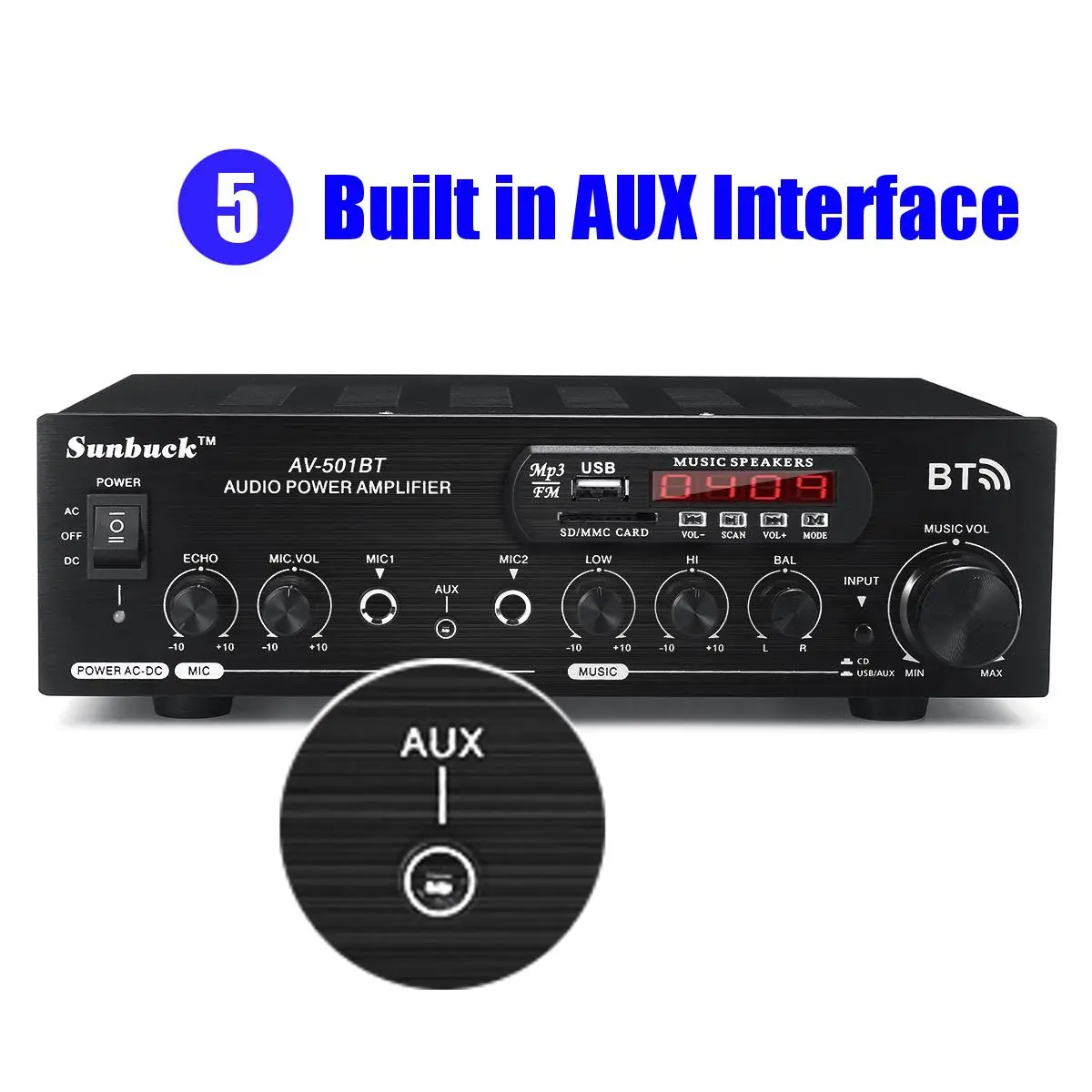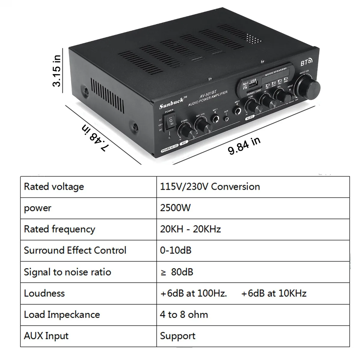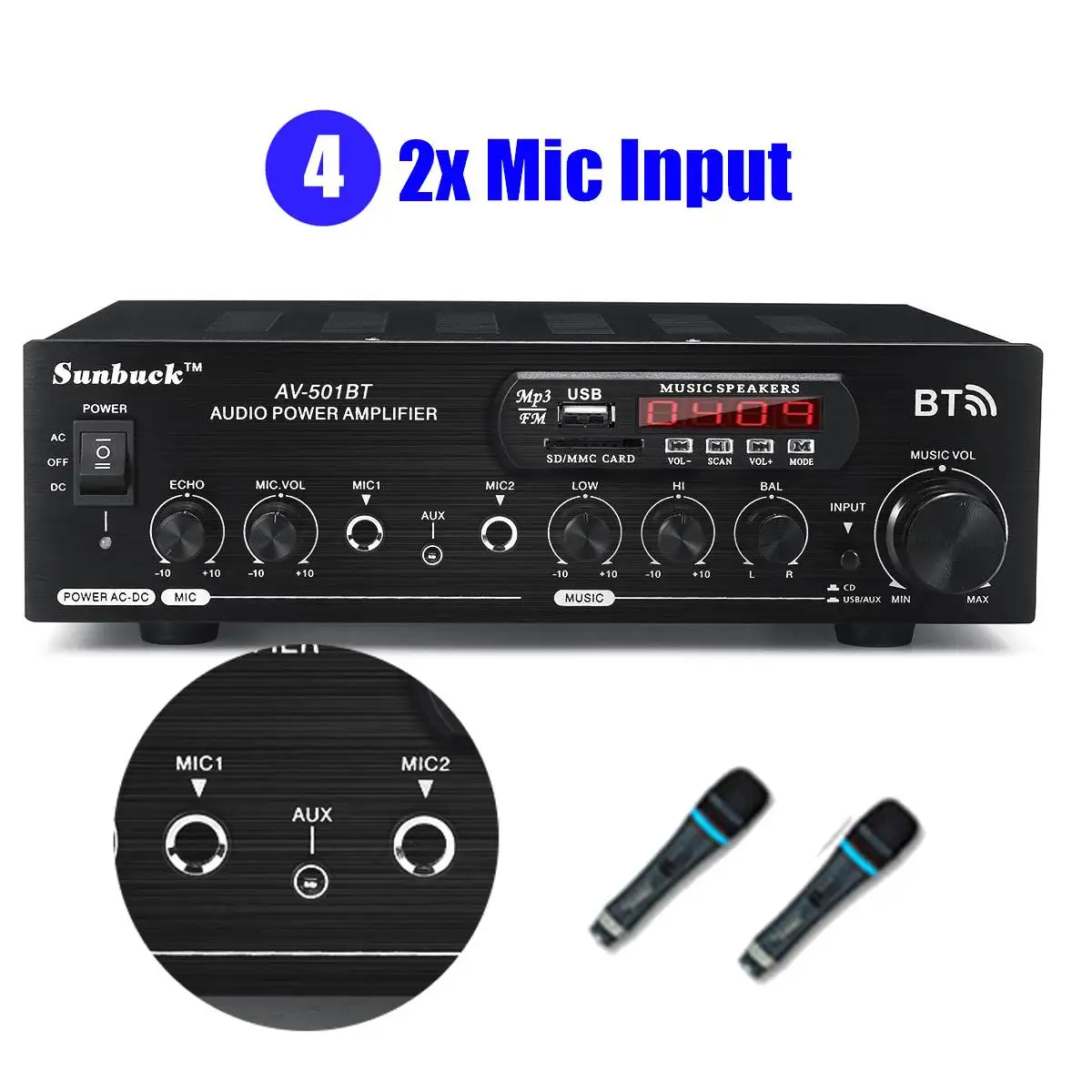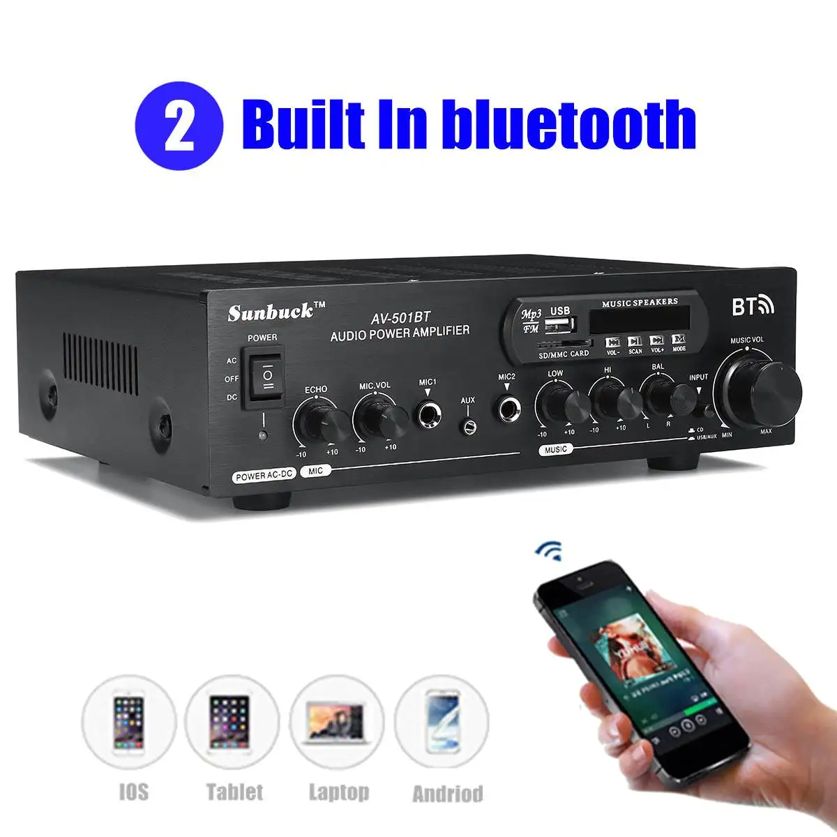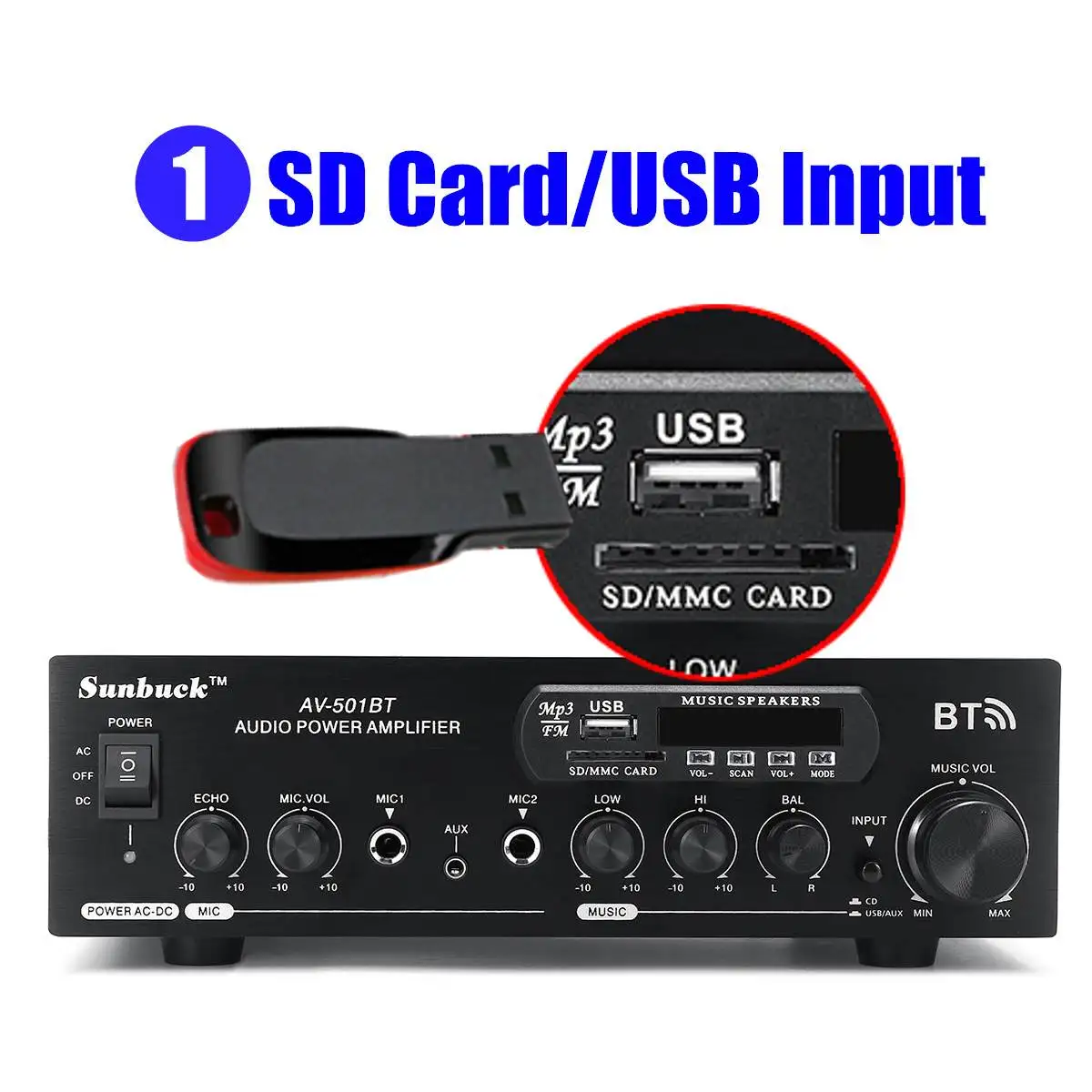 SUNBUCK 2500 Вт 110220 В bluetooth двухканальный микрофон для караоке вход Цифровой реверберативный телефон Поддержка USB SD FM AUX вход